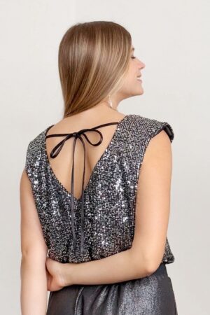 $21,000.00#Blusa #sin manga #hombreras #frunce en hombros #tira para atar en espalda #pailettes #TALLE UNICO