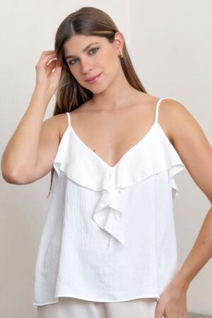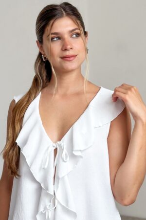 $9,000.00#Blusa #volados adelante #dos tiras para atar #sin manga #crep lino #TALLE UNICO