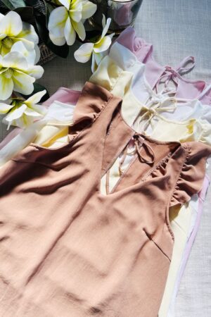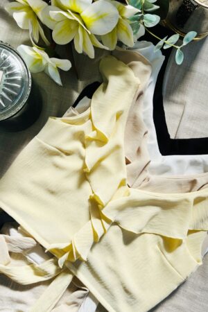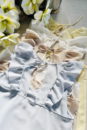 #Blusa #volados cruzado en escote #escote V #sin manga #crep lino #lazo para atar en espalda #TALLE UNICO