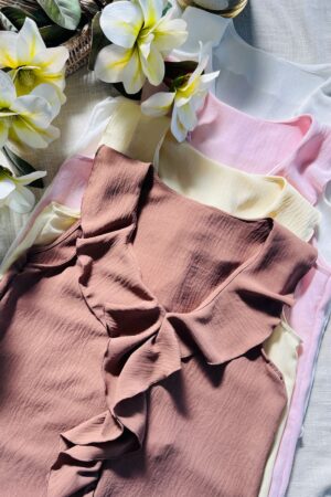 #Blusa #sin manga #escote V #volado cascada en escote #CREP LINO