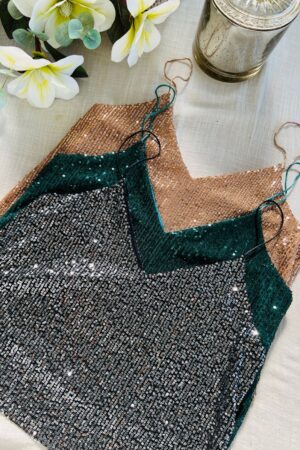 $14,000.00#Musculosa #lentejuelas #cordon de raso #escote V #TALLE UNICO