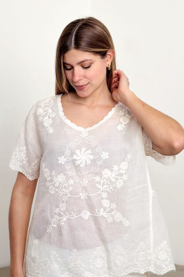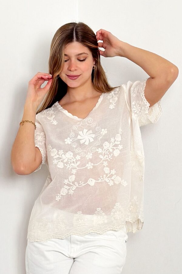 #Blusa #crep lino #escote V #para atar en la espalda #manga voladitos #TALLE UNICO #TALLE M(la modelo mide 170cm y es 38 de jean, te servira de referencia)