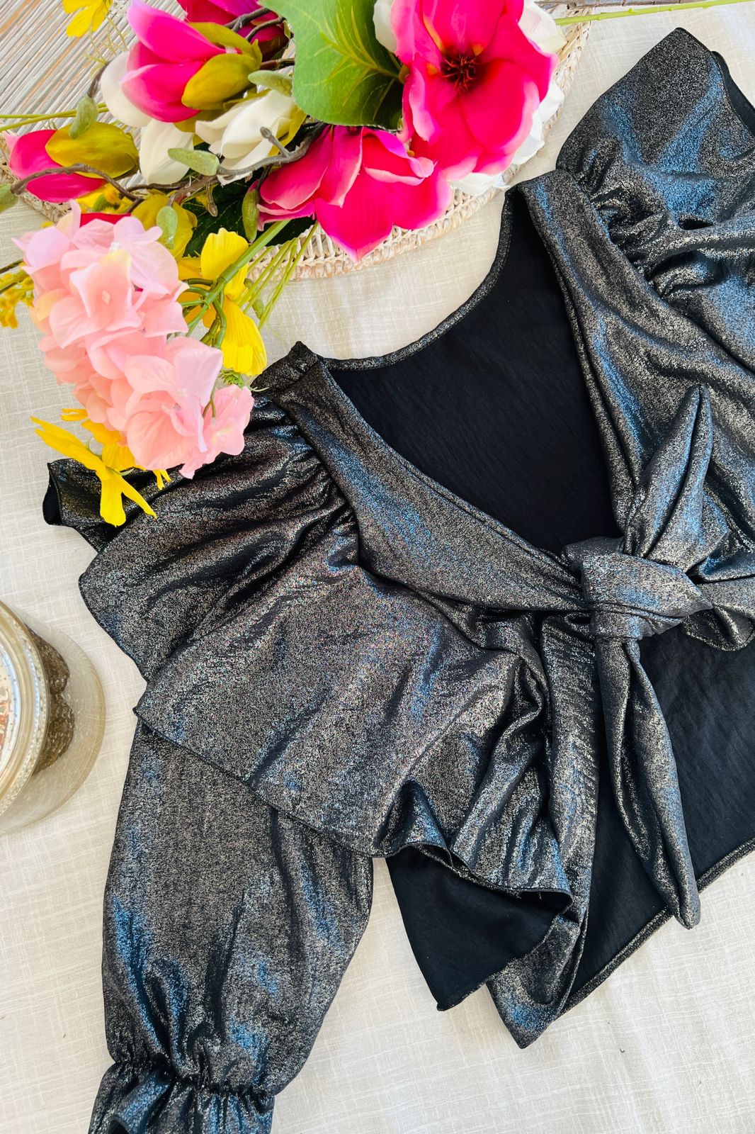 #Blusa #para atar #uso reversible #manga 3/4 #crep foil #TALLE UNICO  #TALLE M/L(la modelo mide 170cm y es 38 de jean, te servira de referencia)