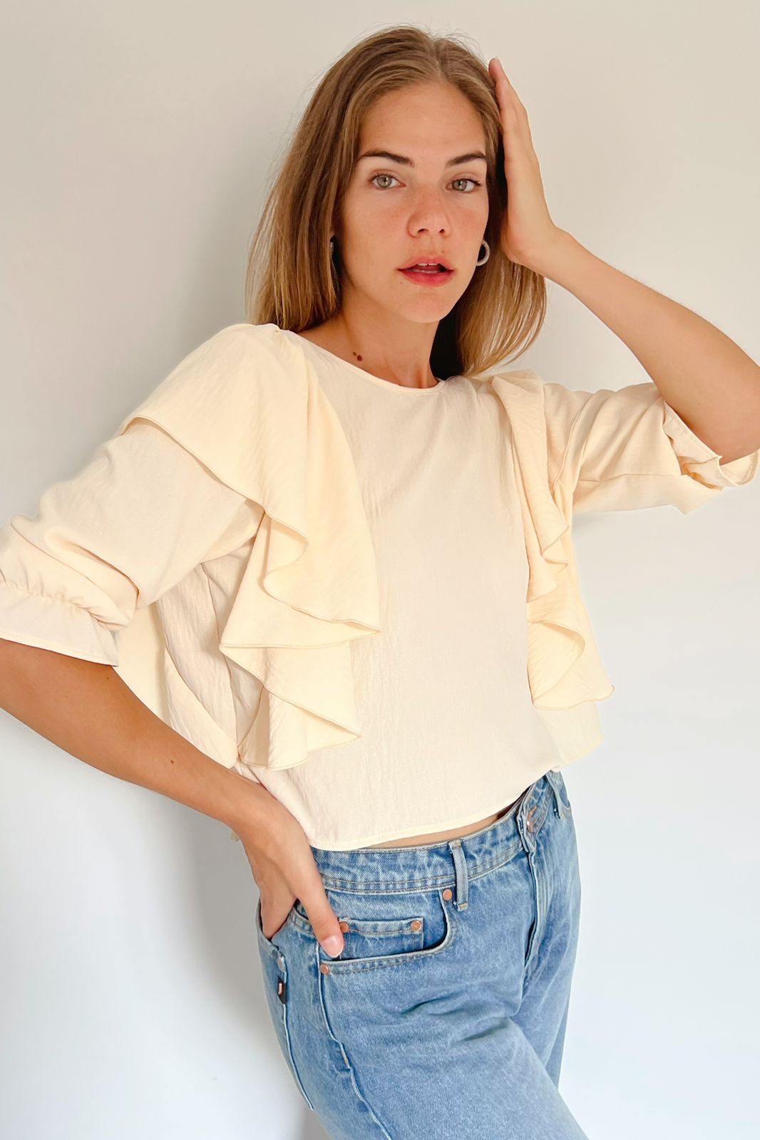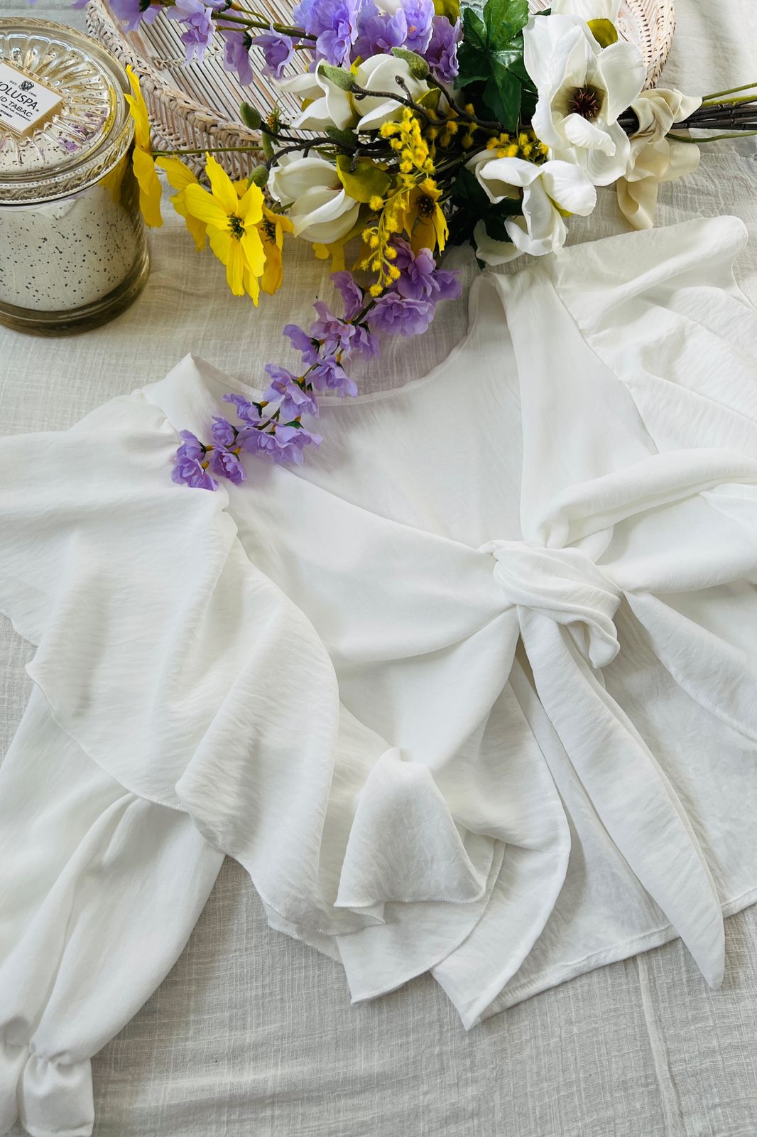 #Blusa #simil lino #doble voladitos #detalle en encaje #manga volado #TALLE UNICO