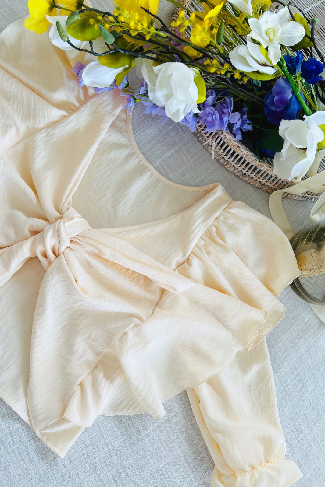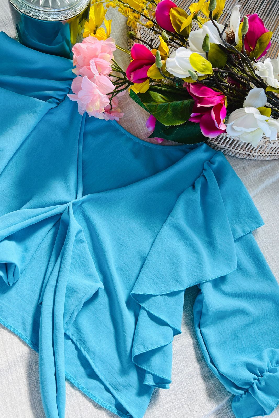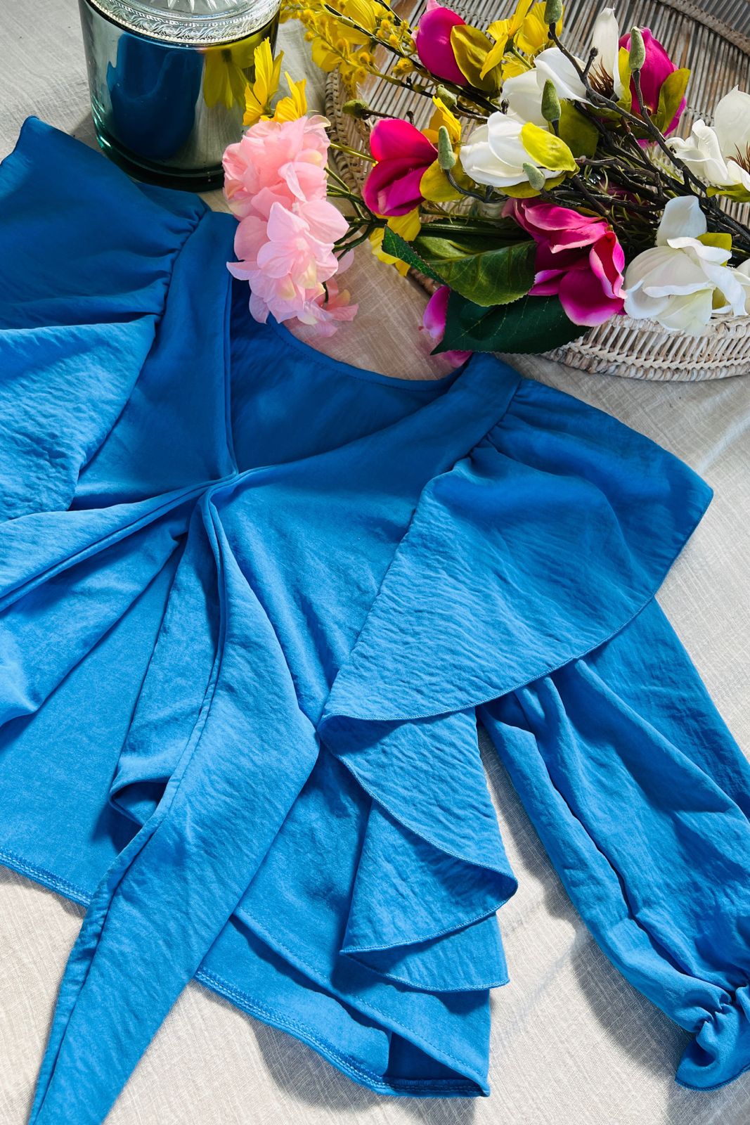 #Blusa #crep #USO REVERSIBLE #volados amplios #para atar #manga 3/4 #TALLE UNICO #TALLE L(la modelo mide 170cm y es 38 de jean, te servira de referencia)