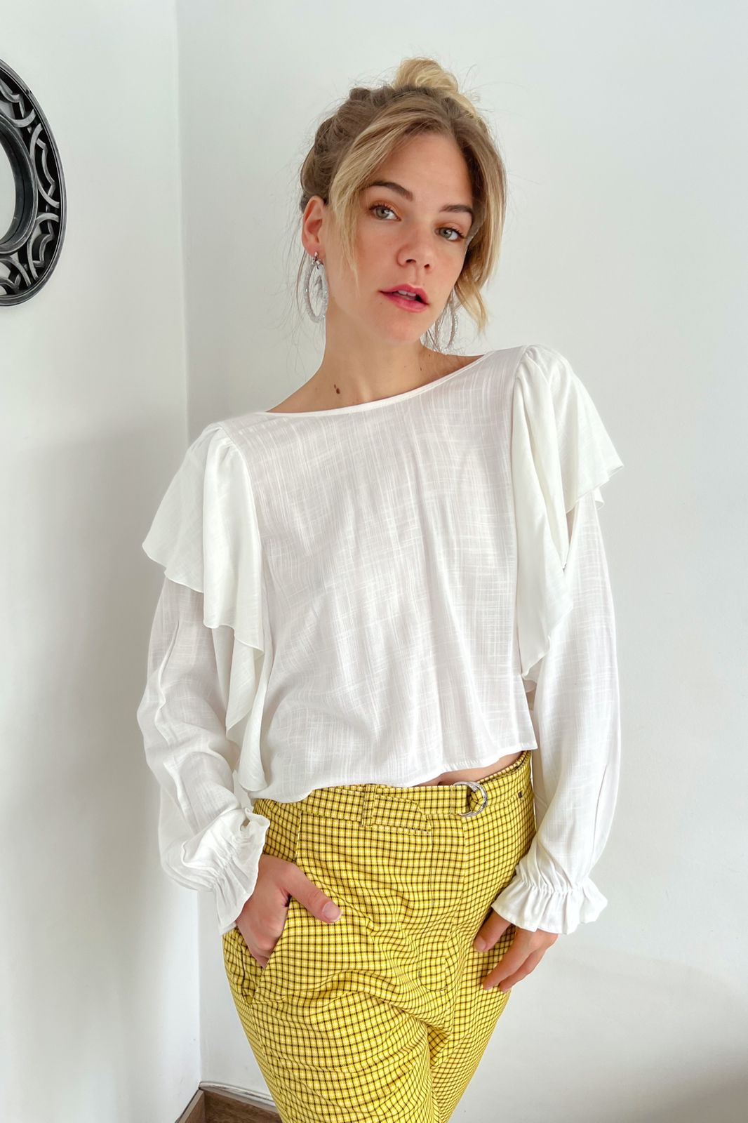 #Blusa #simil lino #manguita globo # manguita en encaje al tono #TALLE UNICO