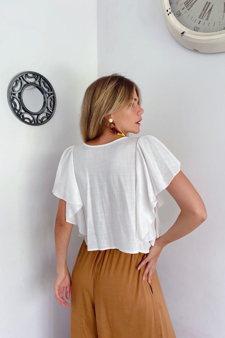 #Top #crep lino #escote V #voladitos #tirita para atar en espalda #TALLE UNICO