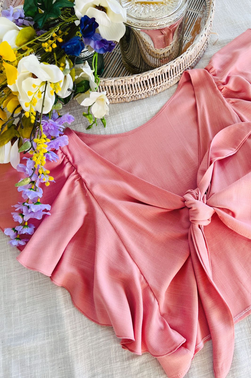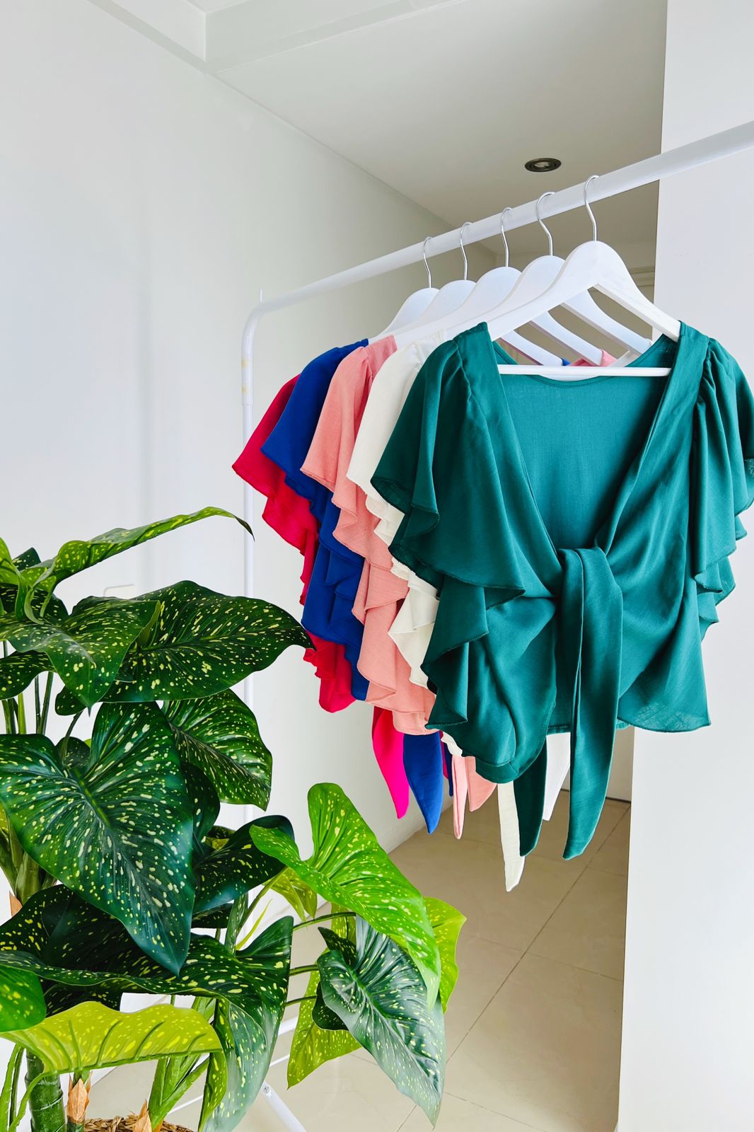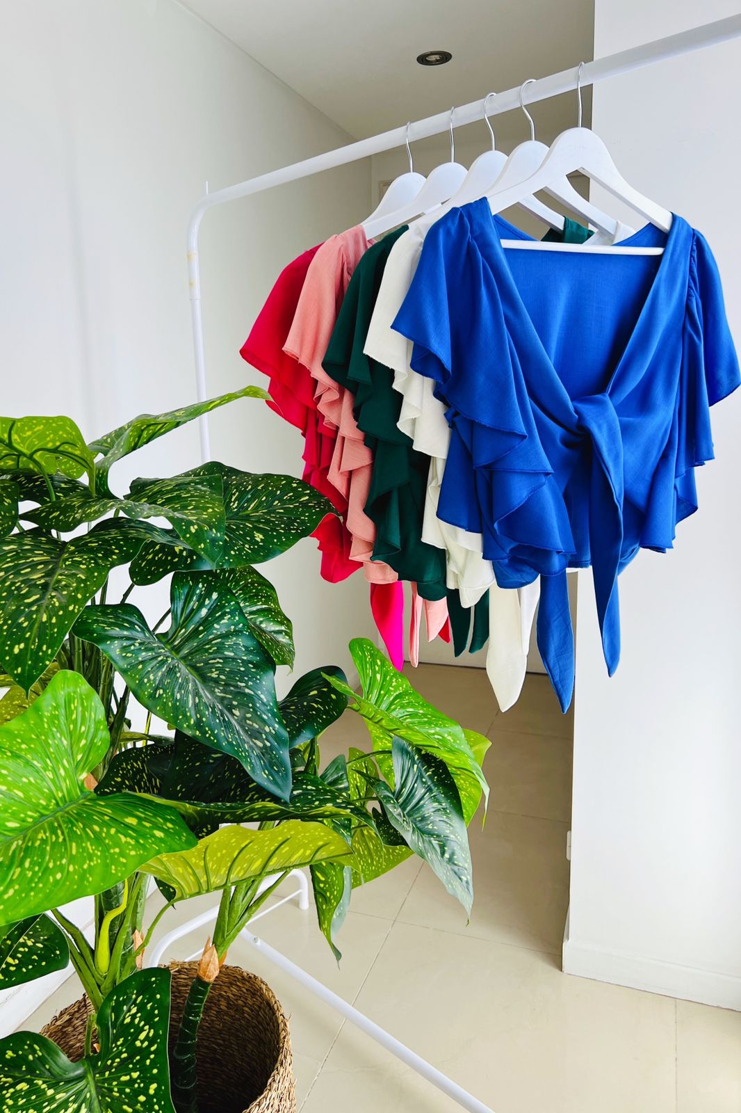 #Blusa #USO REVERSIBLE #Simil lino #volado anchos en mangas #para atar #TALLE UNICO