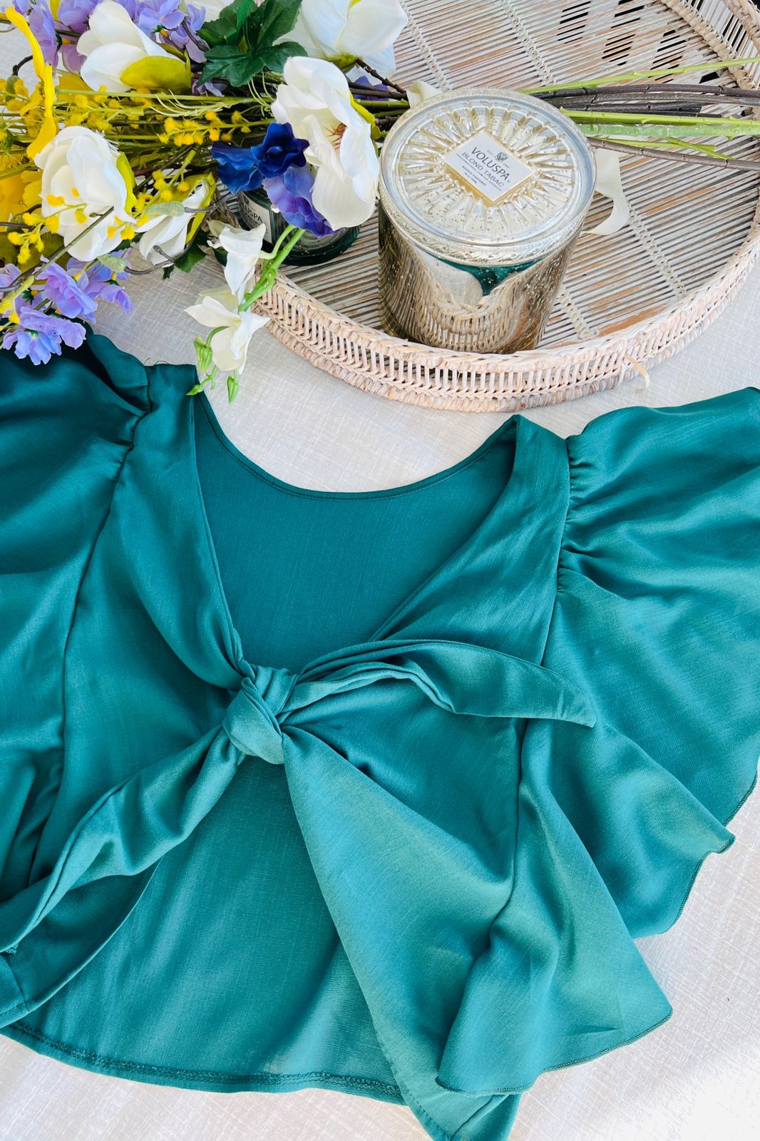 #Blusa #escote V delantero #escote V en espalda #lazo para atar #voladitos en manga #TALLE UNICO #TALLE M/L