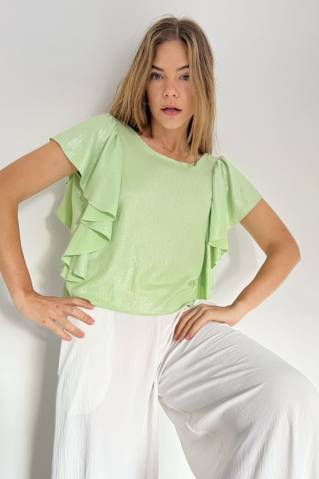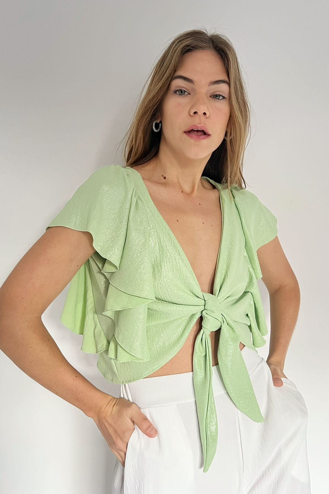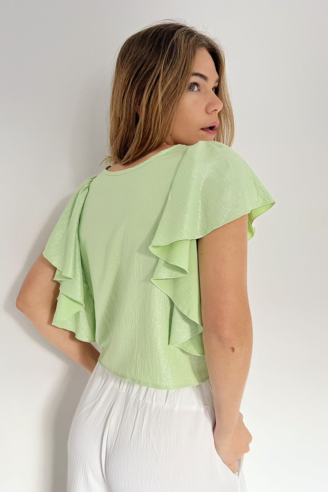 #Top #crep lino #volados #uso reversible #TALLE UNICO #TALLE M/L(la modelo mide 170cm y es 38 de jean, te servira de referencia)