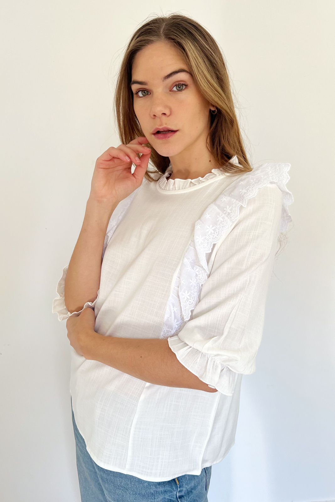 #Blusa #simil lino #detalles en broderie al tono #manga 3/4V #TALLE UNICO #TALLE M/L(la modelo mide 170cm y es 38 de jean, te servira de referencia)