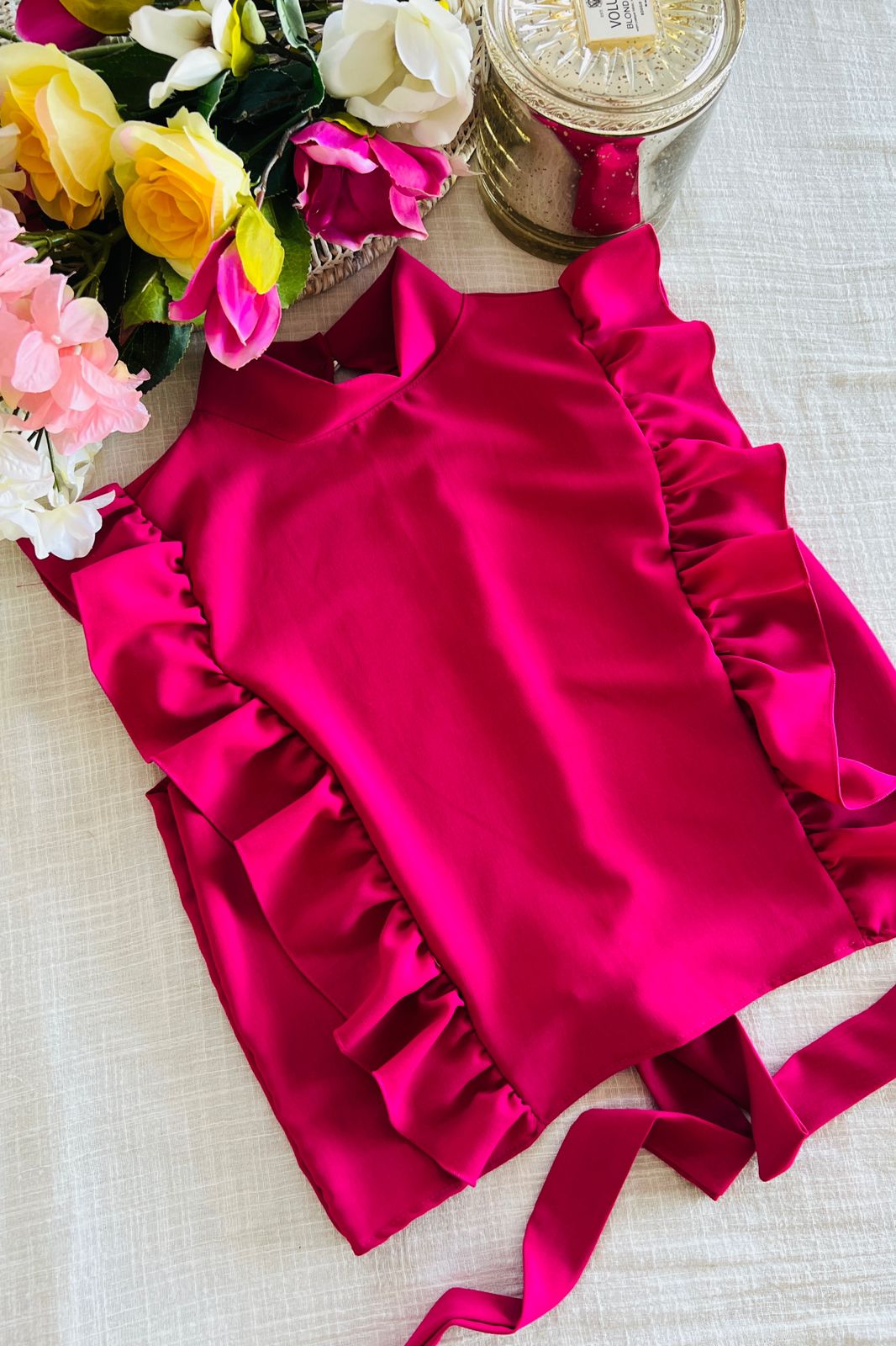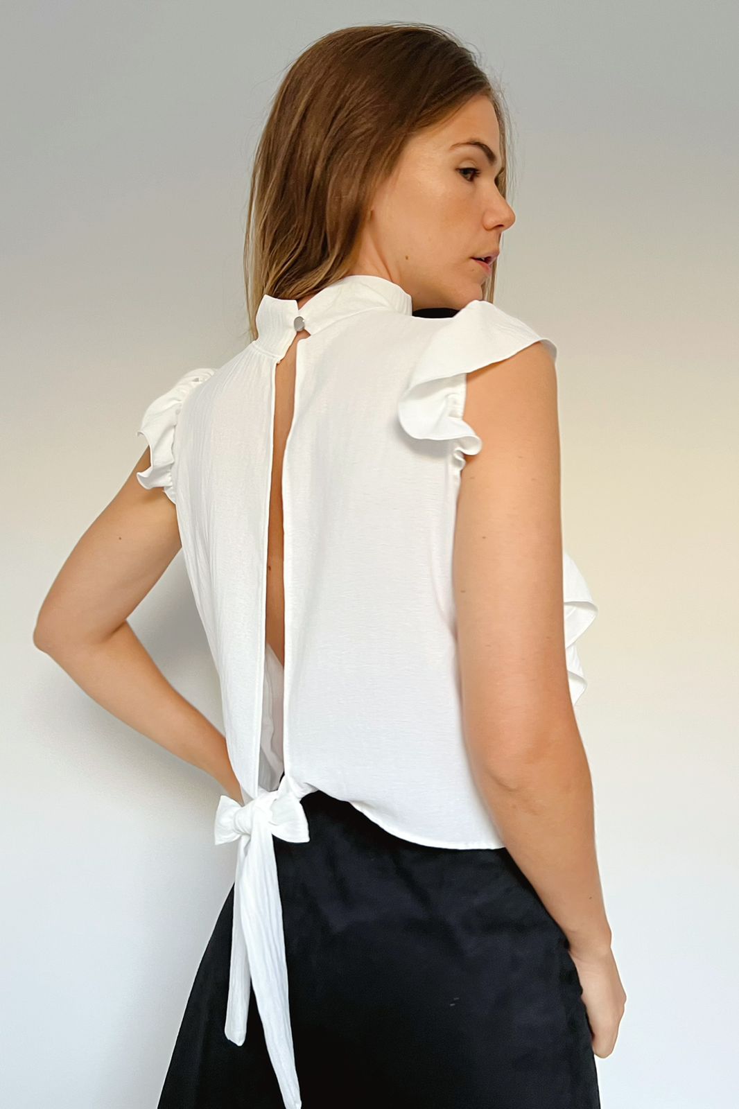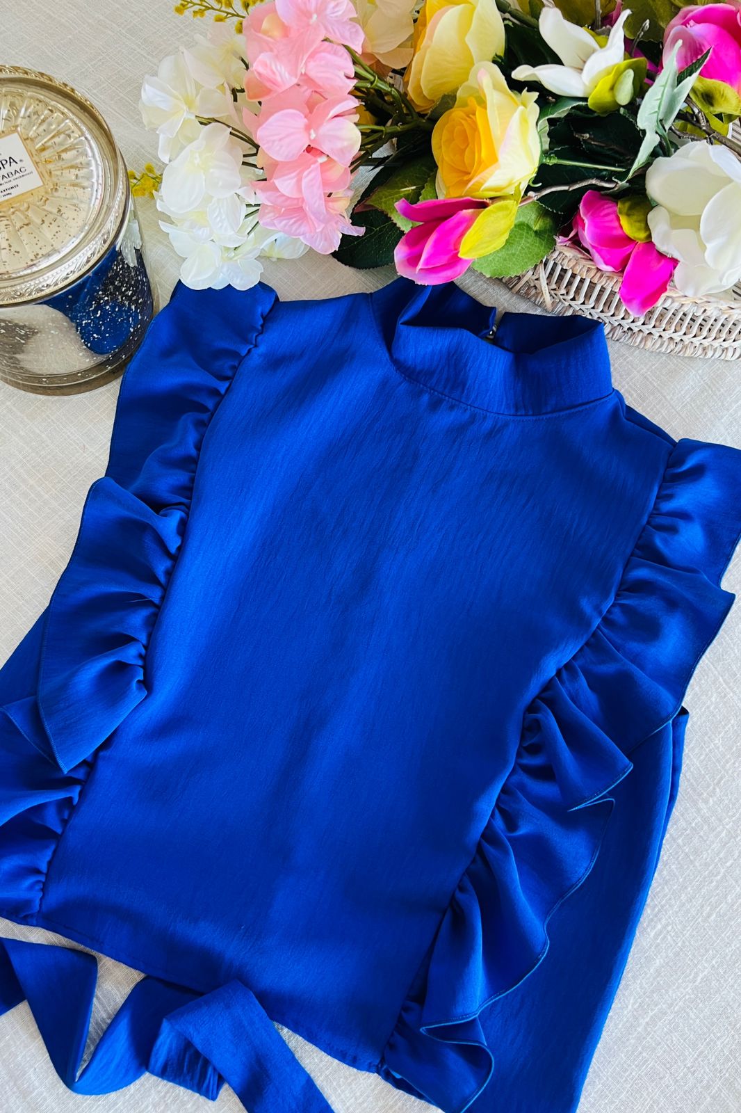 #Blusa #cuello alto #sin manga #voladitos #para atar en la espalda #TALLE UNICO