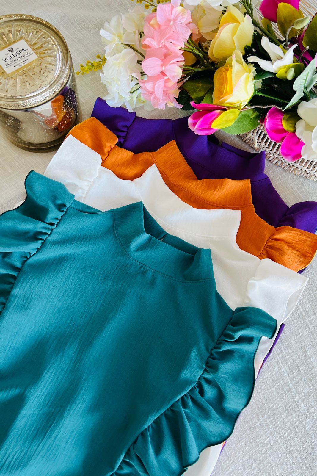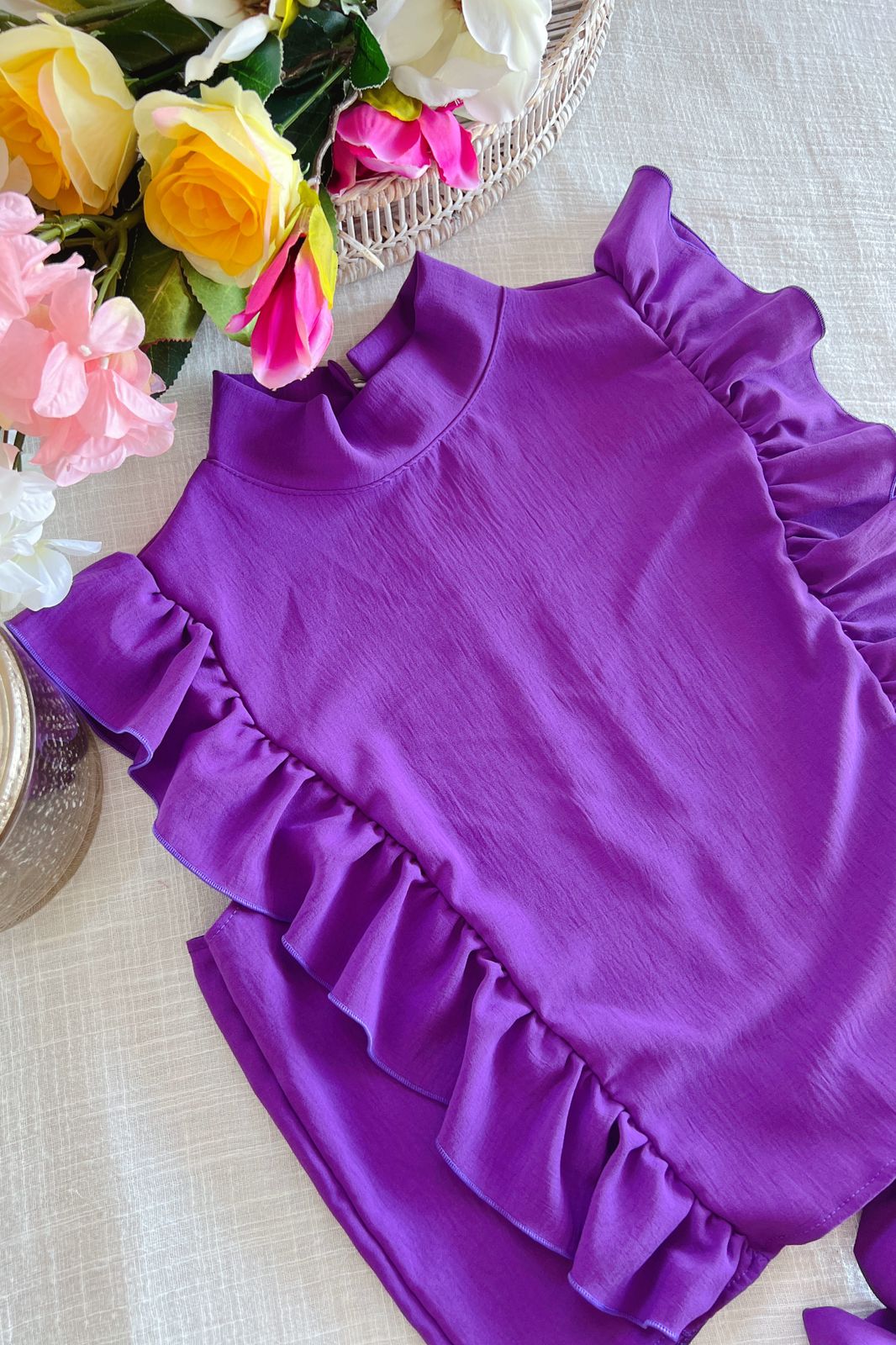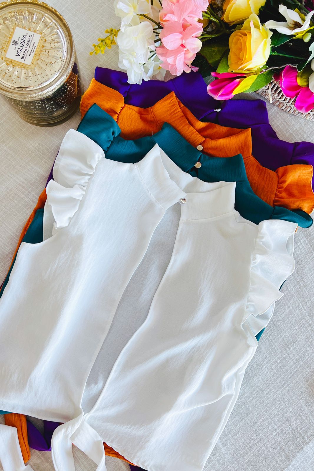 #Blusa #cuello alto #sin manga #voladitos #para atar en la espalda #TALLE UNICO