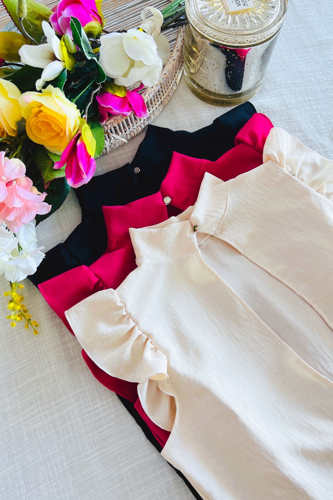 #Blusa #simil lino #manguita globo # manguita en encaje al tono #TALLE UNICO