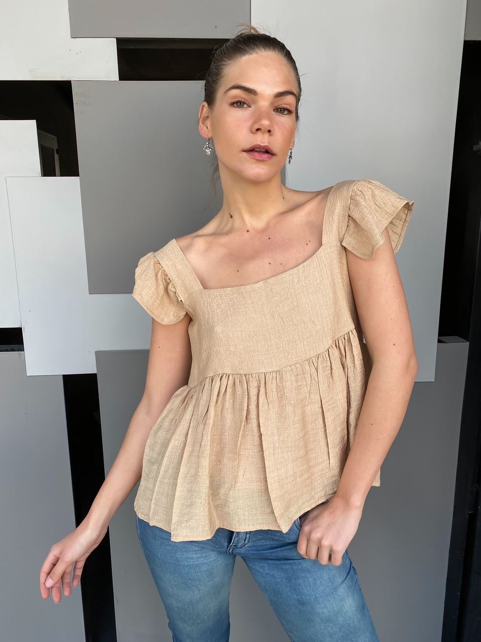 #Musculosita #crep lino #bretel tipo strass #escote reversible #TALLE UNICO