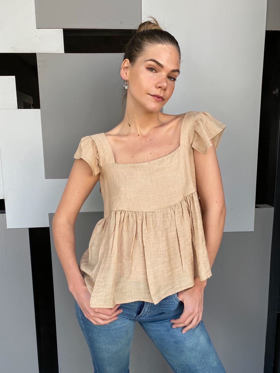 #Blusa #manga corta #abierto en la espalda #pailettes #TALLE UNICO
