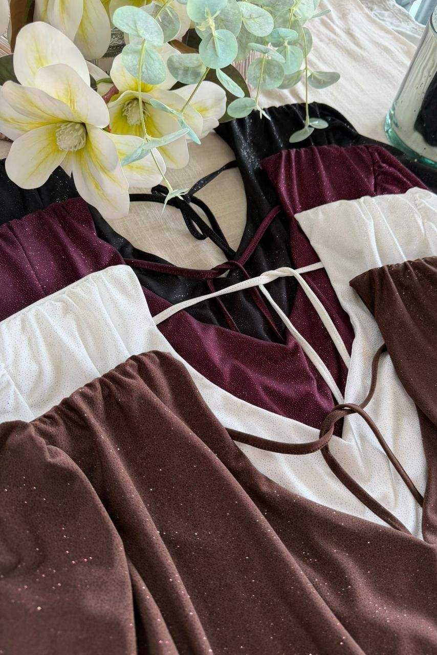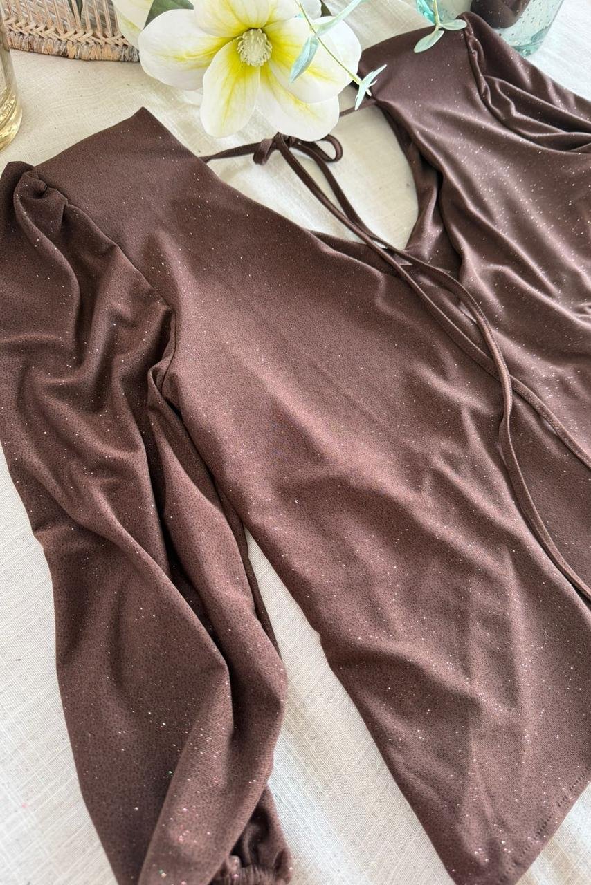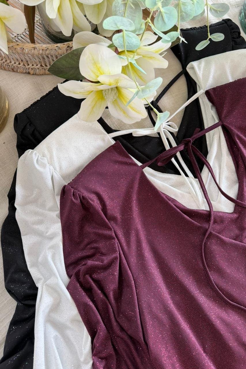 #Blusa escote V en delantera y espalda #hombreras #microfibra glitter #tiritas para atar en espalda #TALLE UNICO