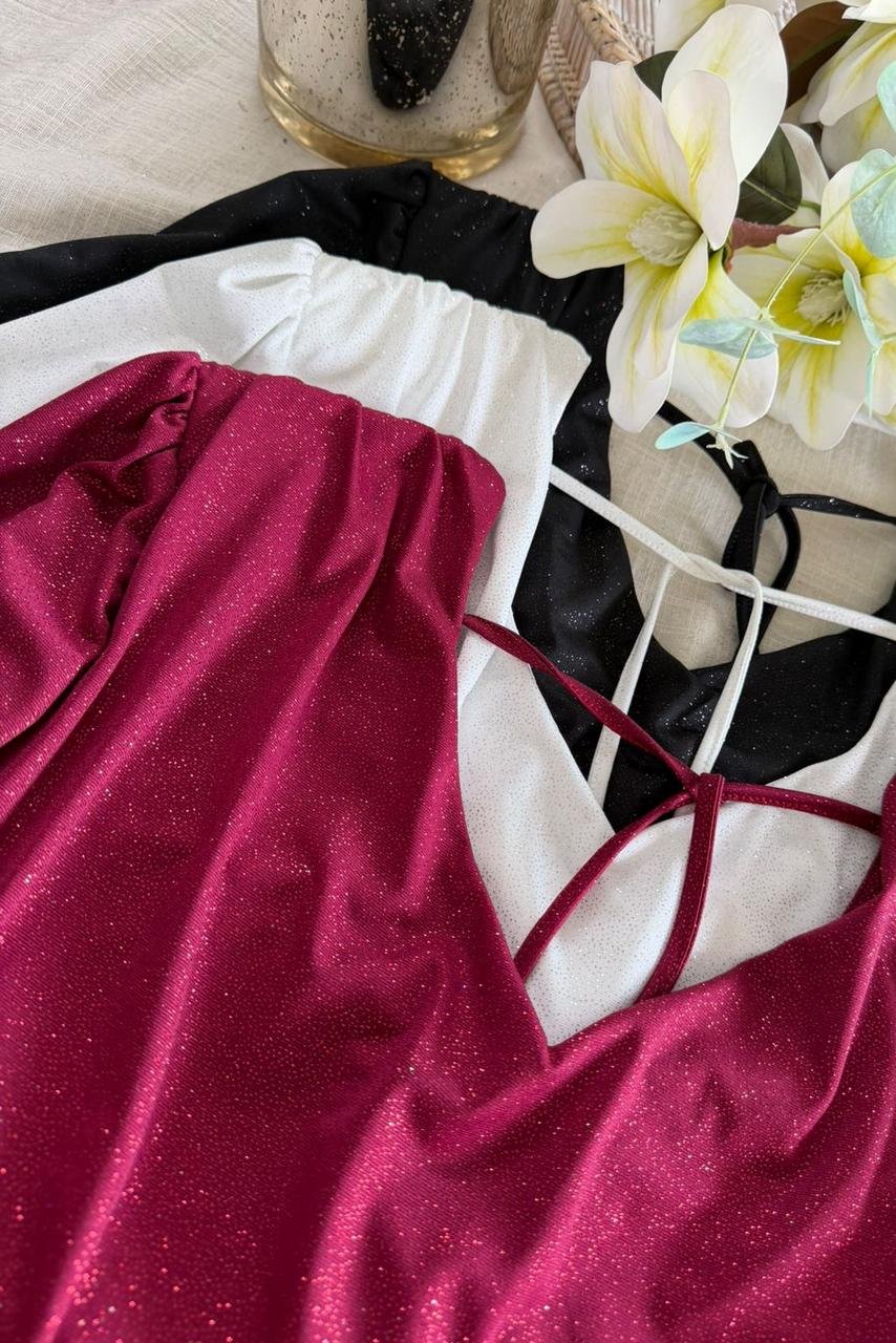 #Blusa #pailettes #sin manga #doble escote V #tiras al tono para atar en la espalda #TALLE UNICO #TALLE L