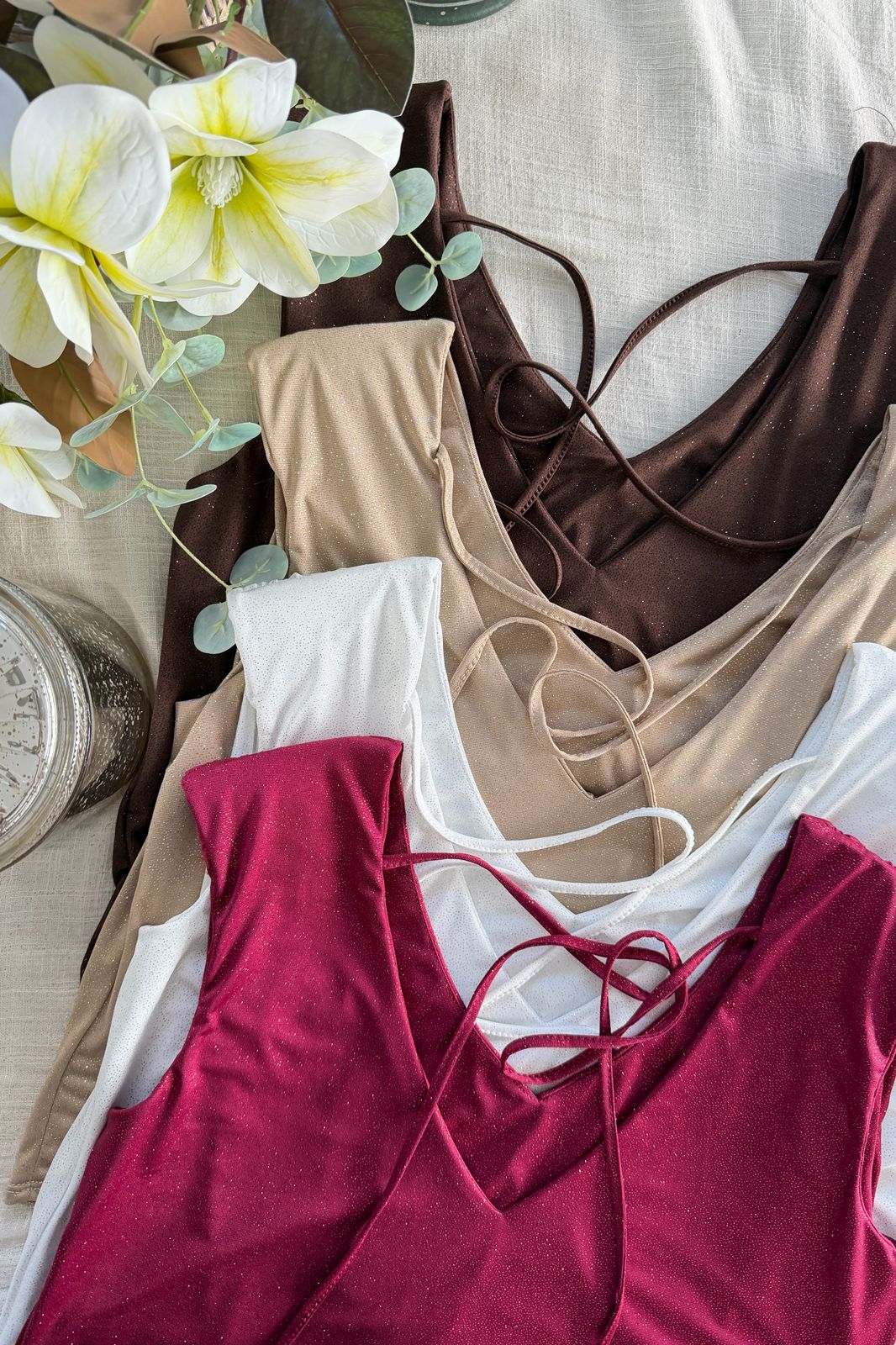 Blusa Candela microfibra glitter sin manga