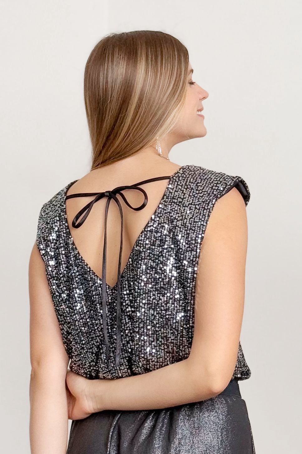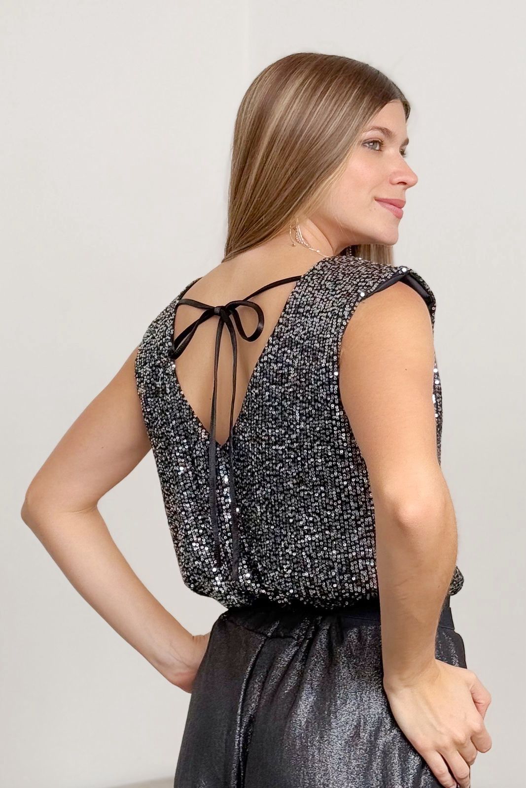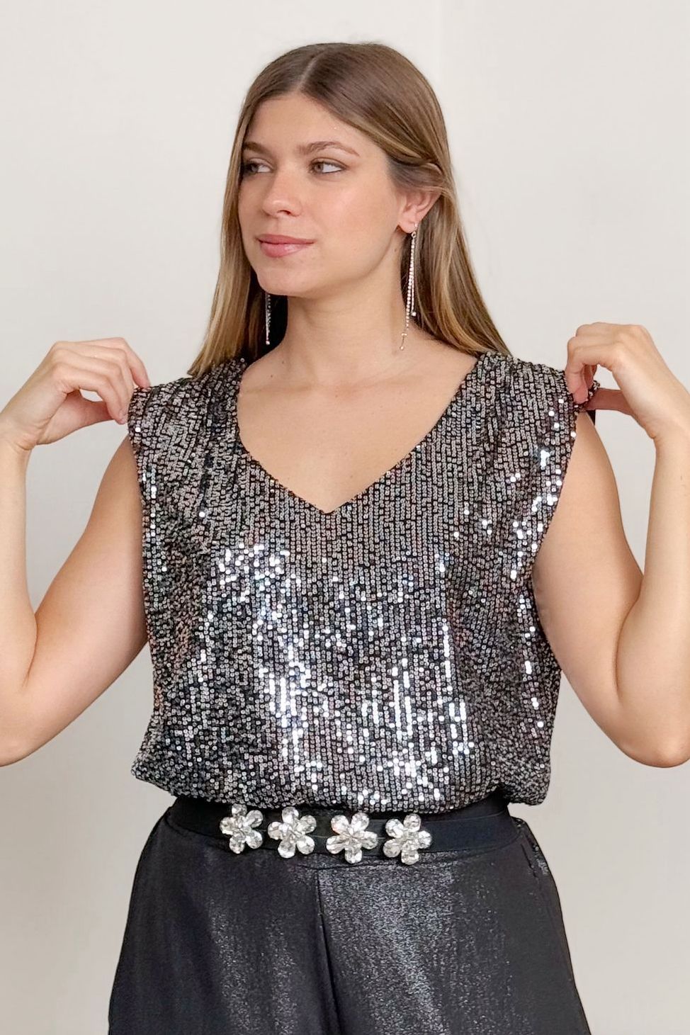 #Blusa #sin manga #hombreras #frunce en hombros #tira para atar en espalda #pailettes #TALLE UNICO