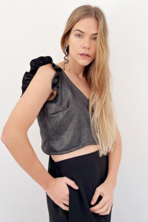 #Top #escote V #voladitos #con lazo en espalda #CREP FOIL #TALLE UNICO #TALLE M/L (la modelo mide 170cm y es 38 de jean te servira de referencia)