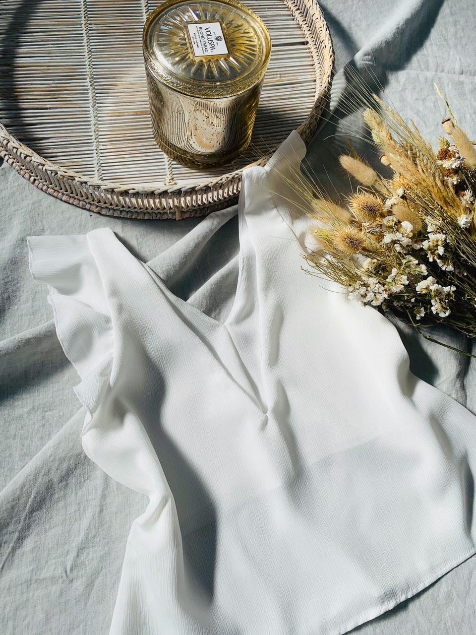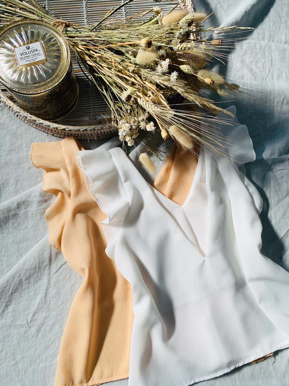 #Blusa #escote V delantero #escote V en espalda #lazo para atar #voladitos en manga #TALLE UNICO #TALLE M/L