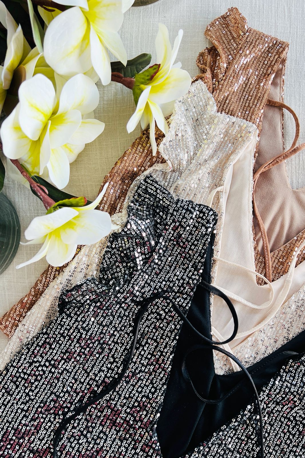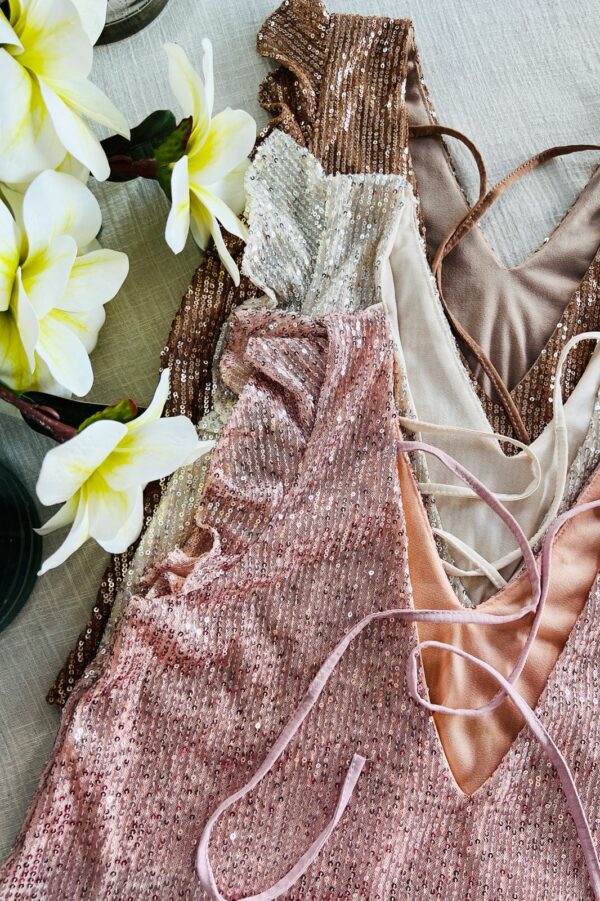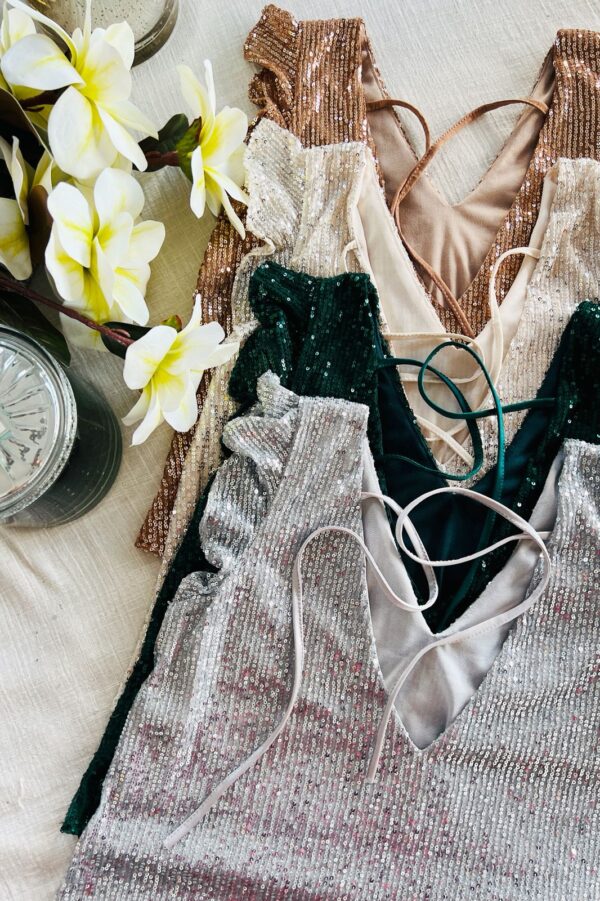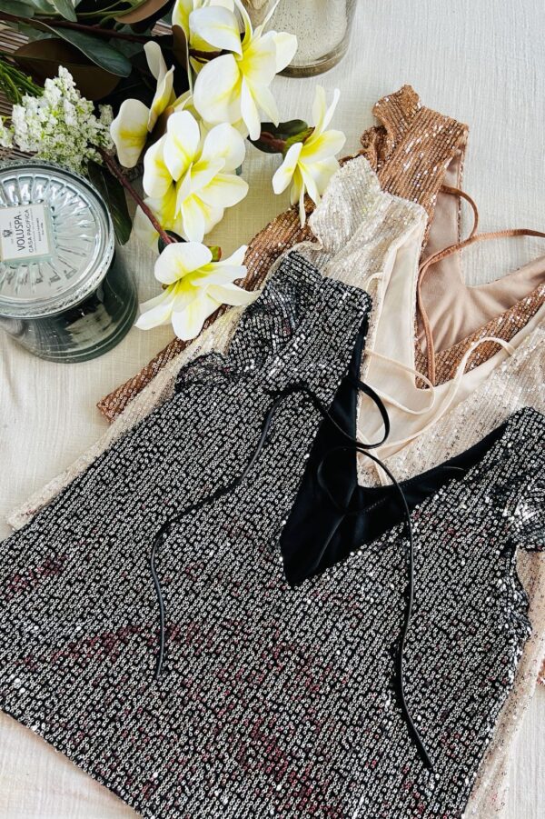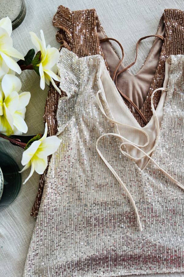 #Blusa #pailettes #escote V en delantero y espalda #tiritas para atar en espalda al tono #voladitos en manga #TALLE UNICO