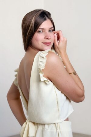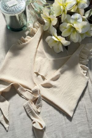 $8,000.00#Top #crep lino #escote V #voladitos #tirita para atar en espalda #TALLE UNICO