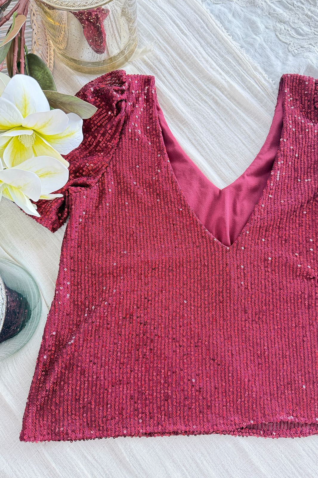 #Blusa #pailettes #escote V delantero y espalda #manga princesa #TALLE UNICO