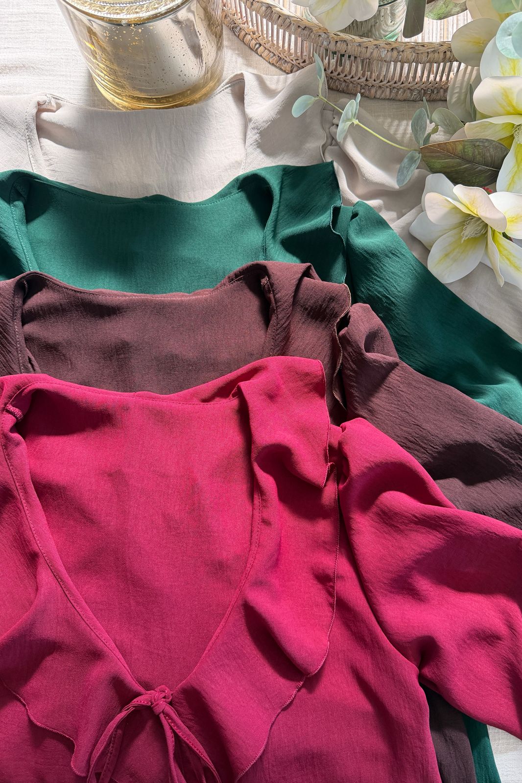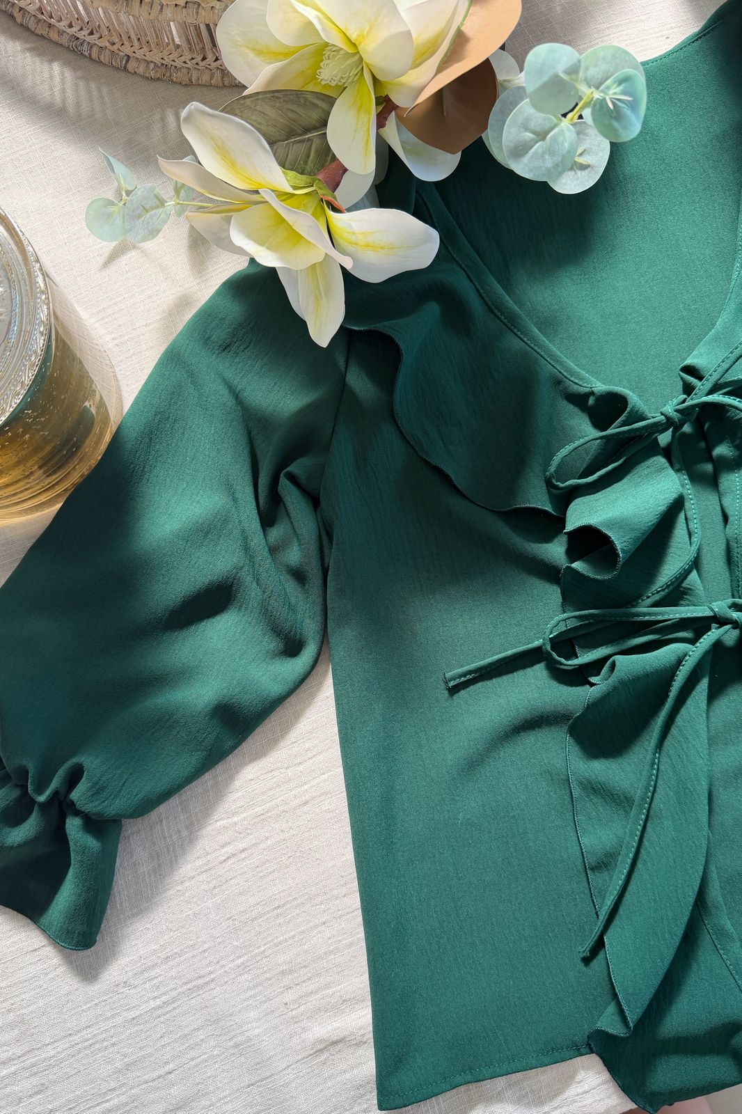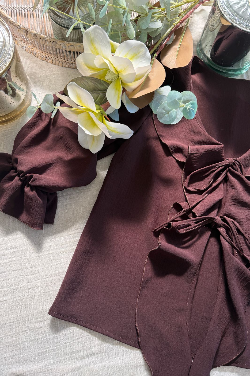 #Blusa #volados frontales #con tiritas para atar #manga 3/4 #crep lino #TALLE UNICO
