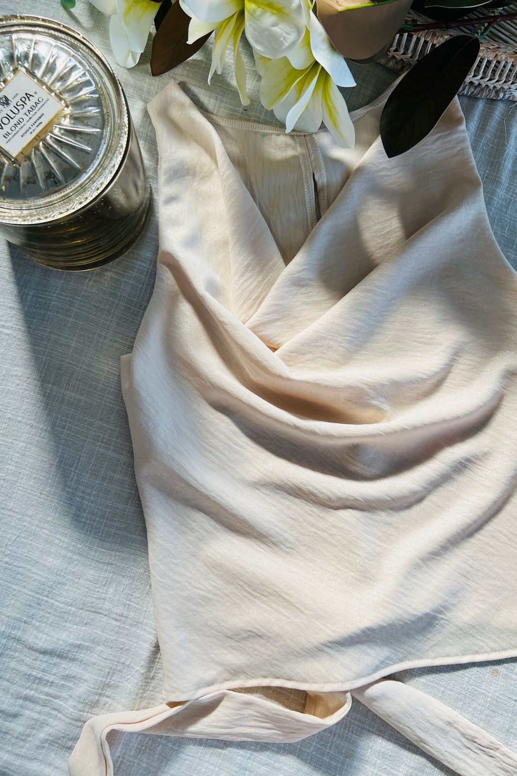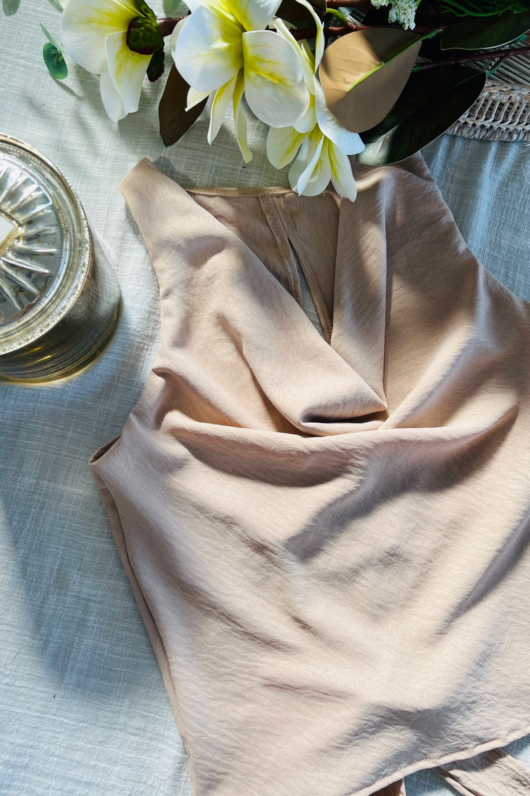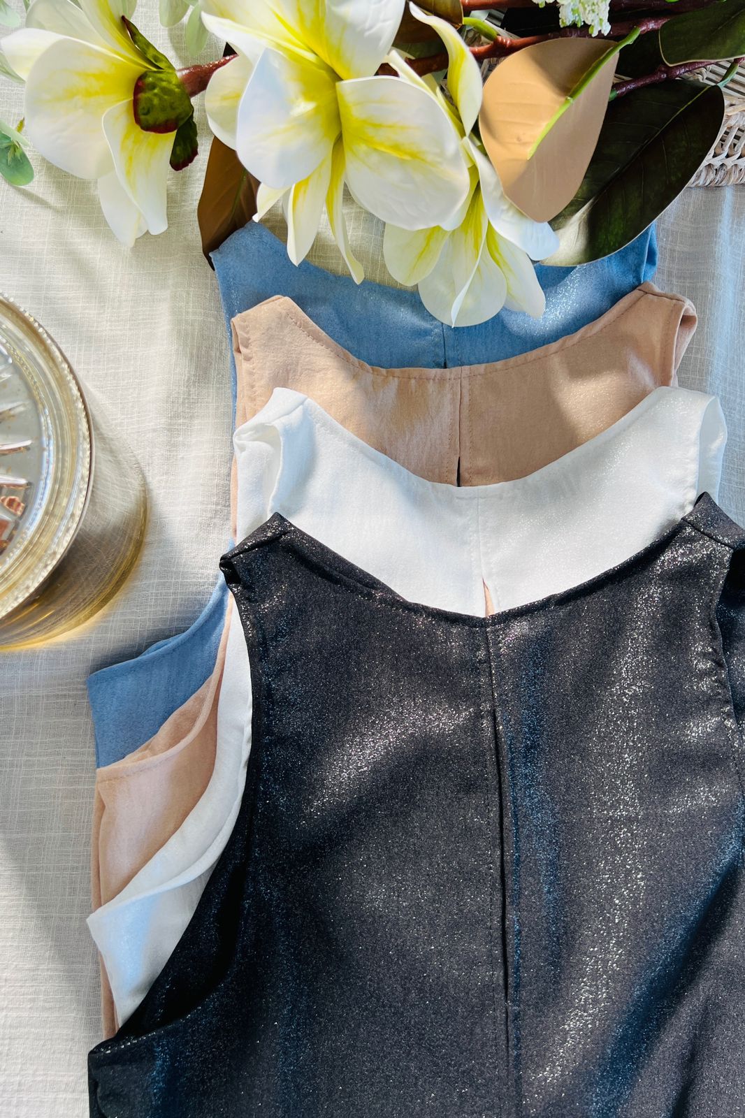 #Blusa #cuello buche #sin manga #cey brilloso #para atar #TALLE UNICO