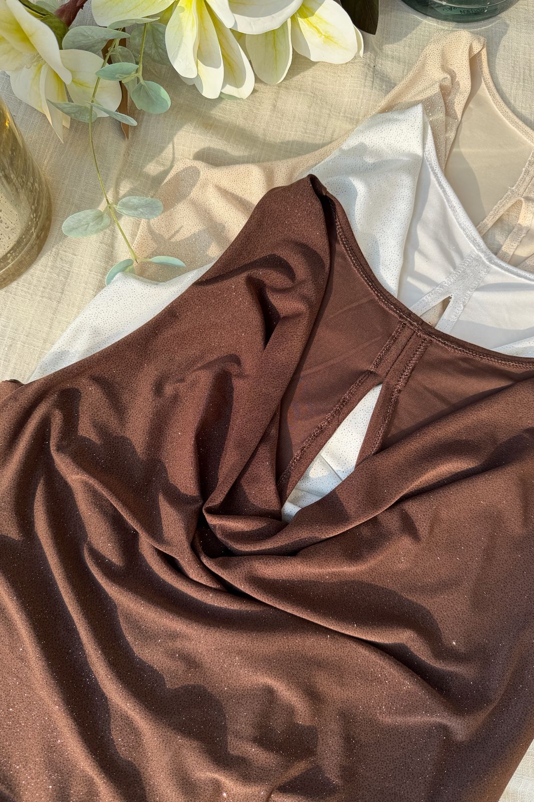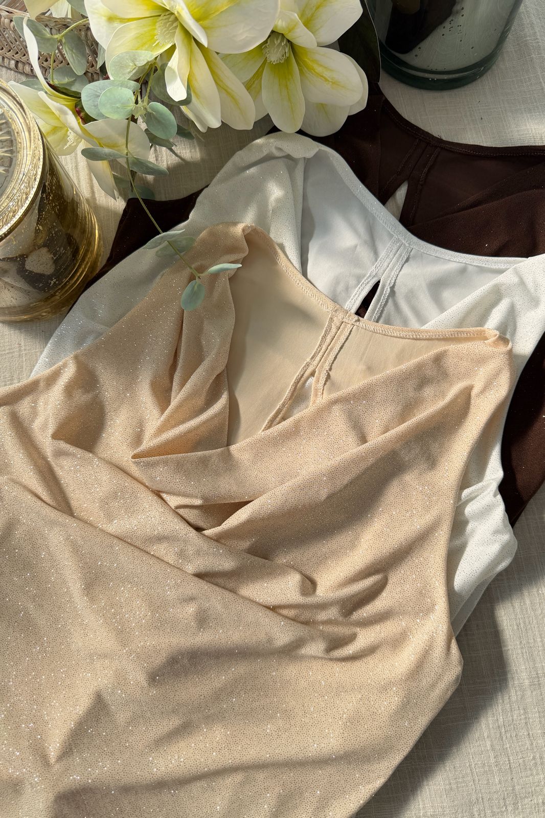 #Blusa #cuello buche #musculosa #para atar #microfibra glitter #TALLE UNICO
