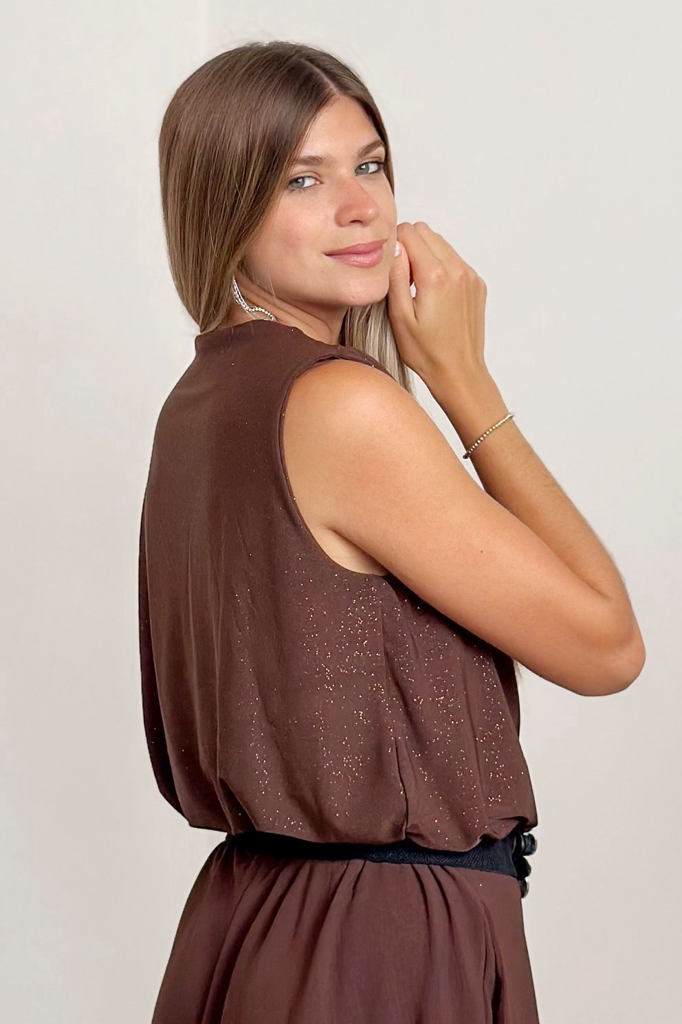 #Blusa #microfibra glitter #sin manga #cruzada #hombreras #TALLE UNICO