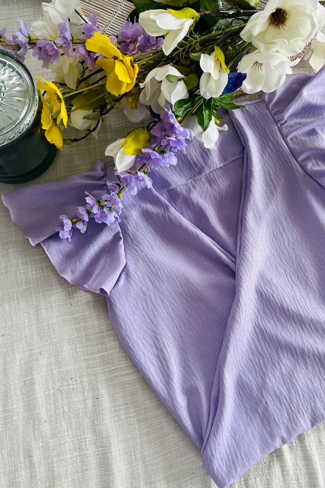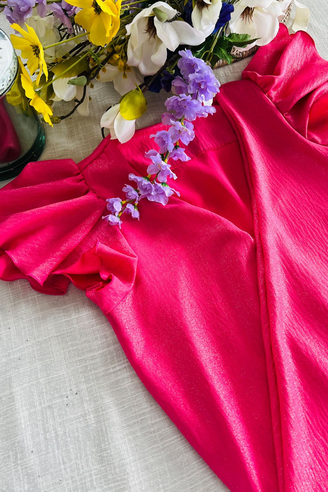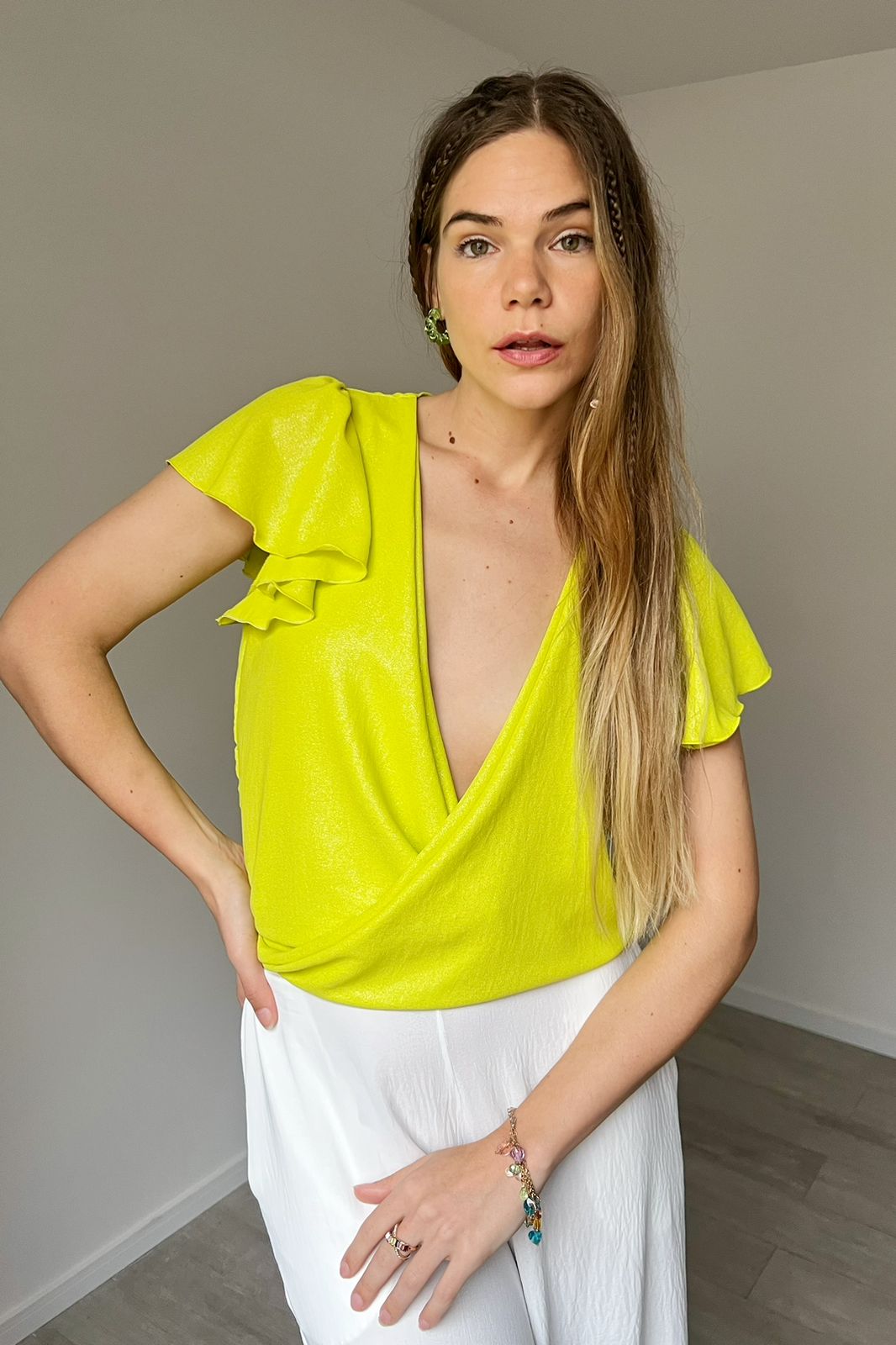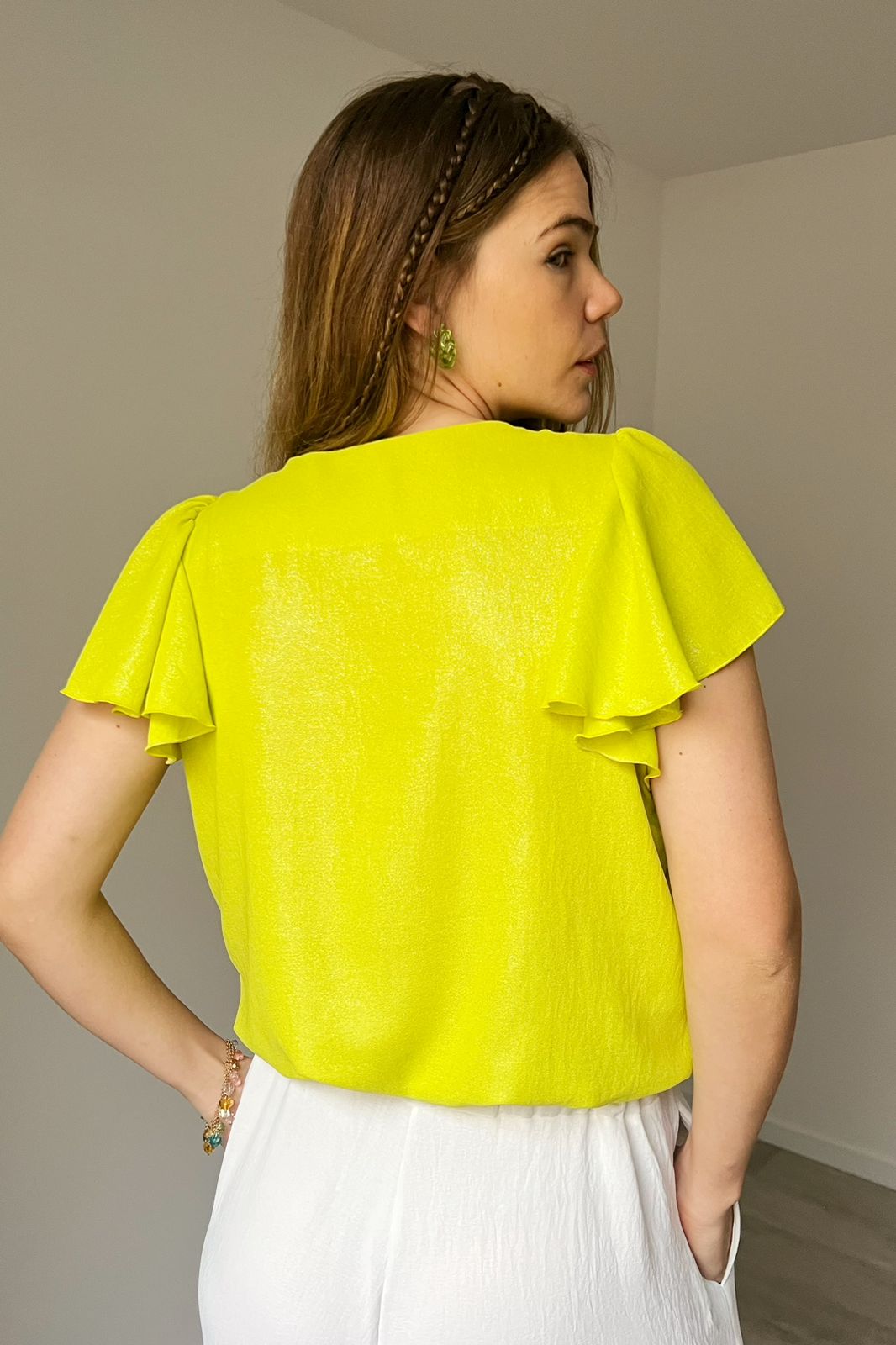 #Blusa #crep foil #cruzado adelante #voladitos en manga #TALLE UNICO #TALLE M (la modelo mide 170cm y es 38/40 de jean te servira de referencia)
