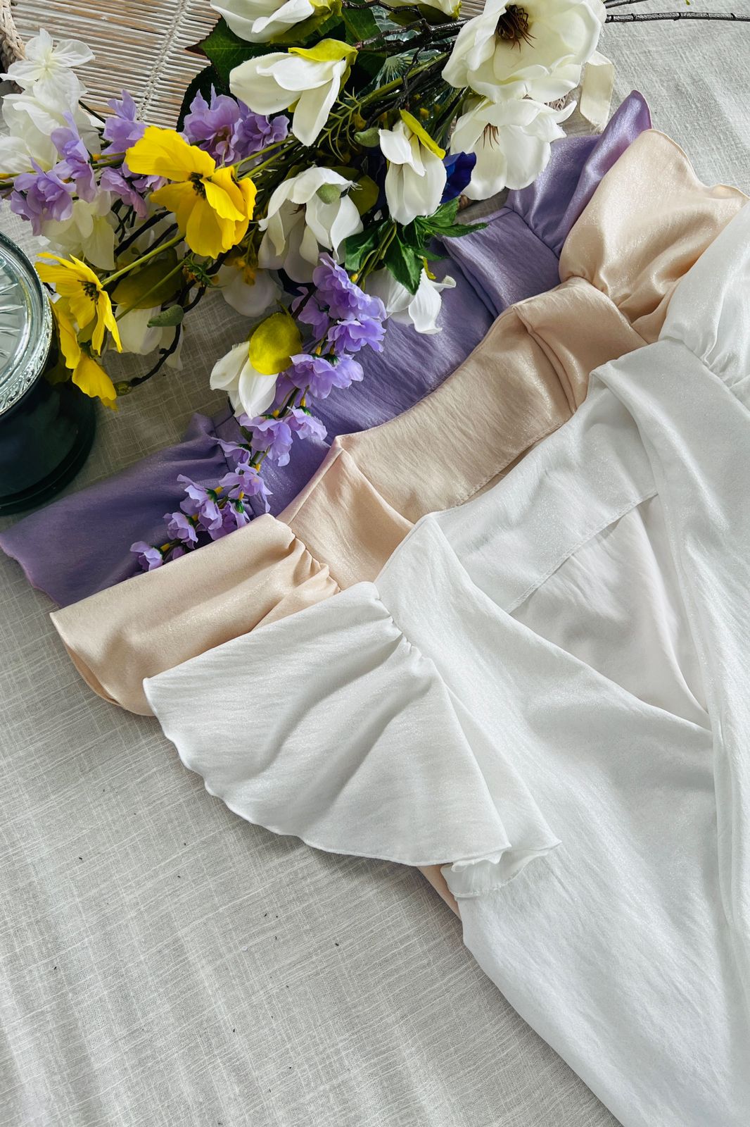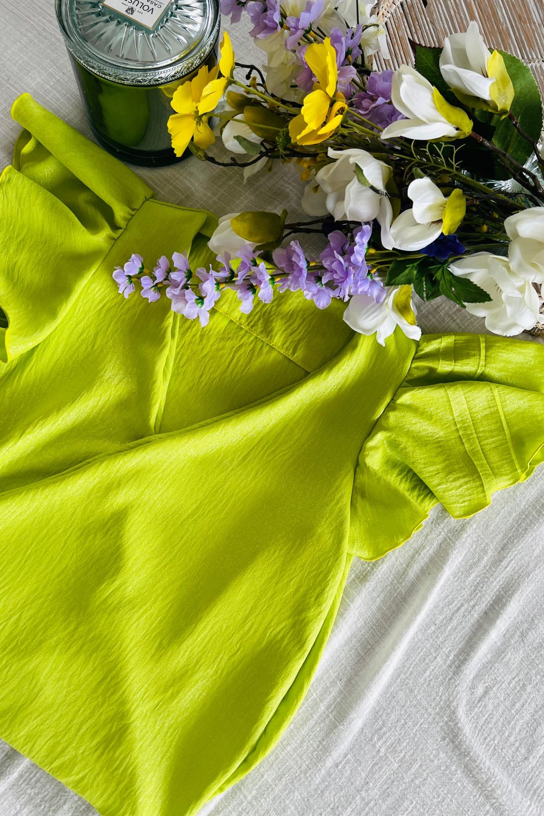 #Blusa #simil lino #voladitos de encaje al tono #escote V #tiritas para atar en la espalda #TALLE UNICO #TALLE M