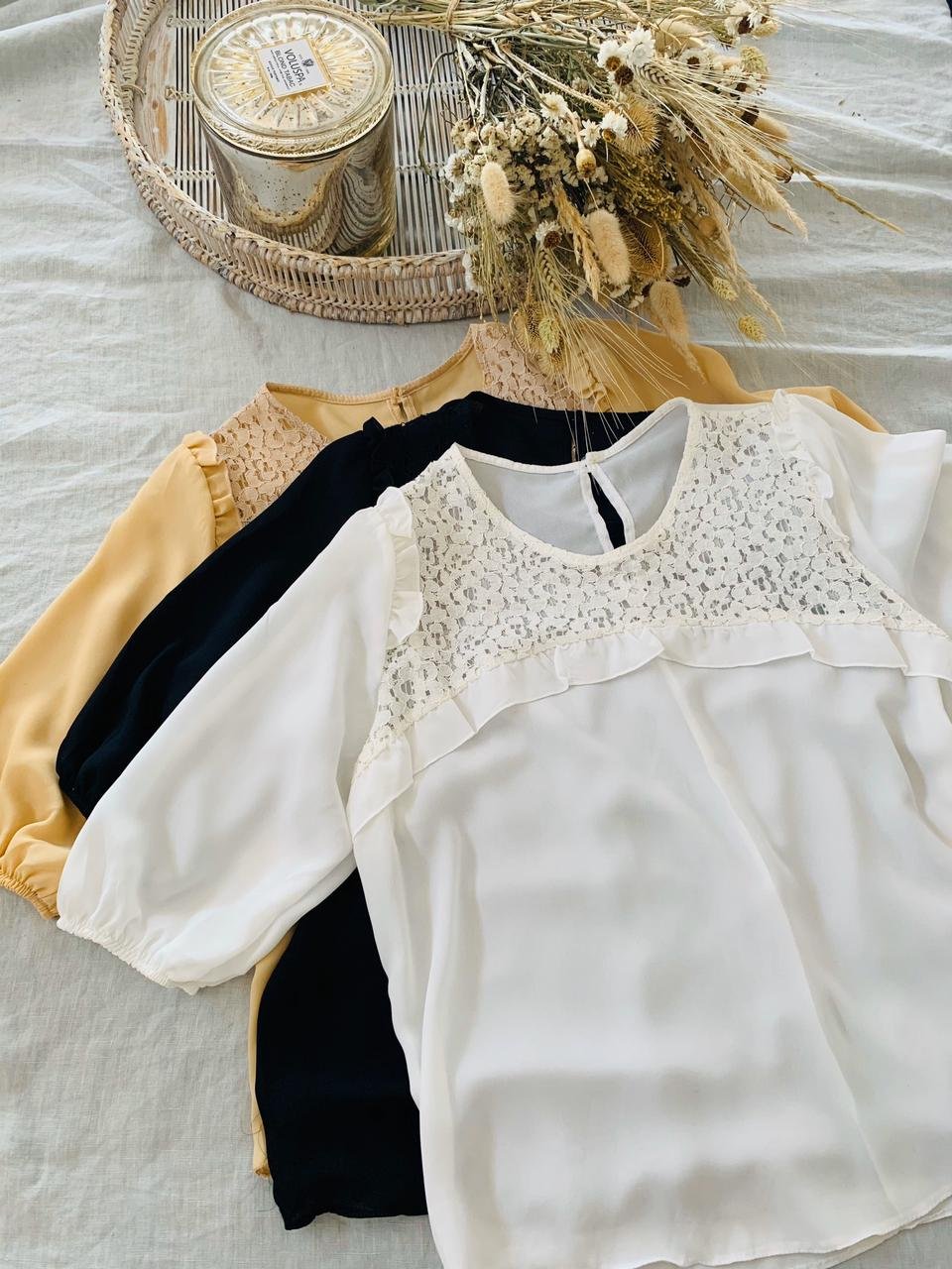 #Blusa #simil lino #manguita globo # manguita en encaje al tono #TALLE UNICO