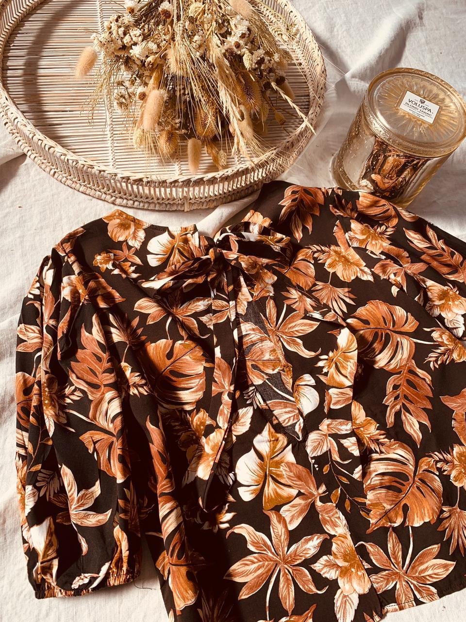 #Blusa #Manga Globo #Escote Espalda #Lazo #Voile Estampado