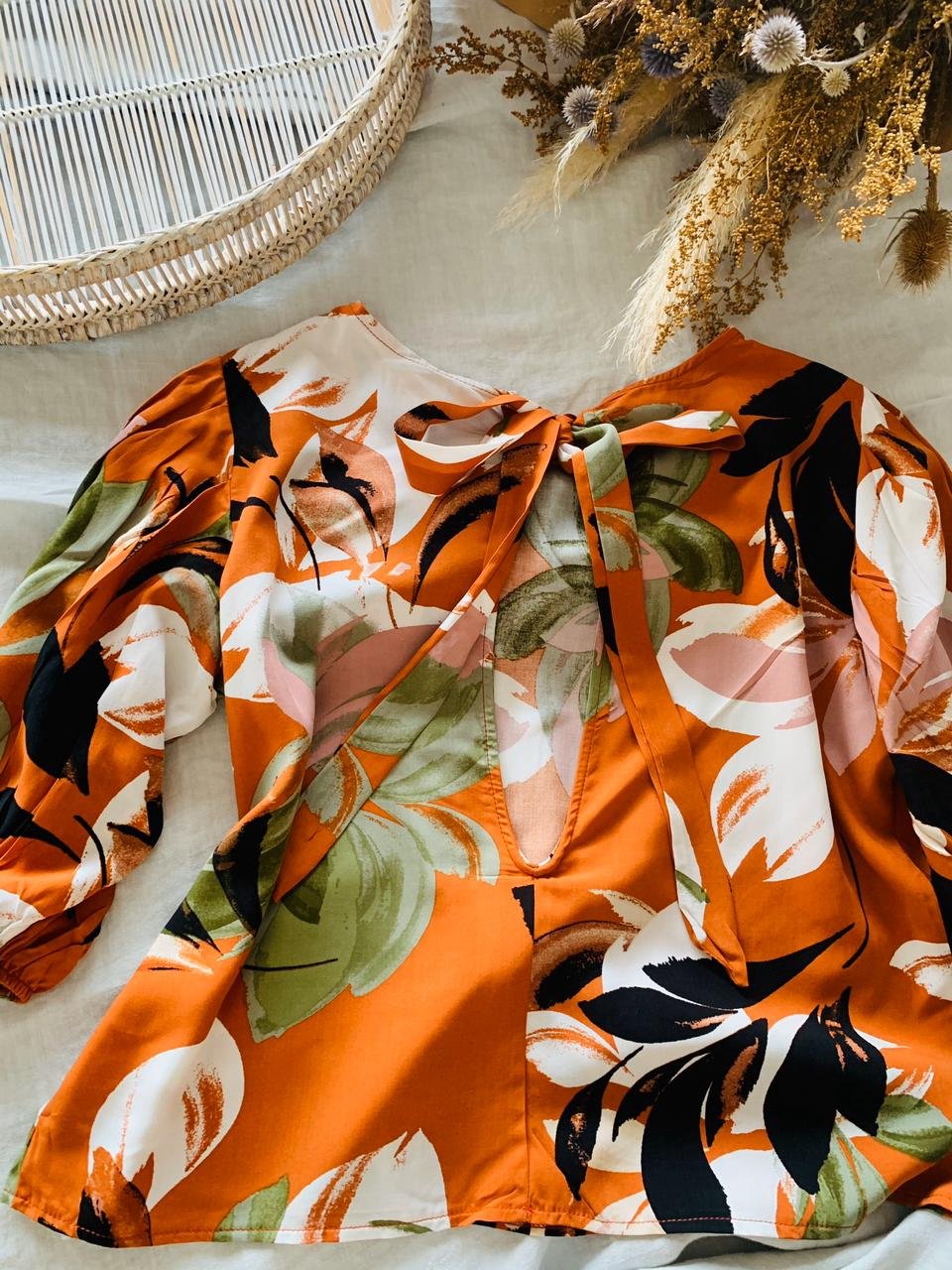 #Blusa #manga globo #escote espalda #lazo #voile estampado