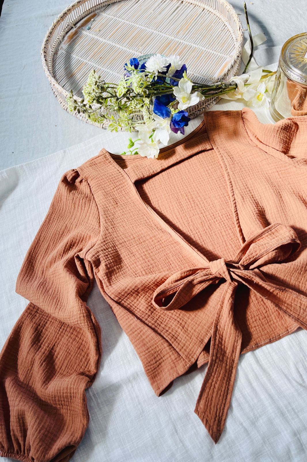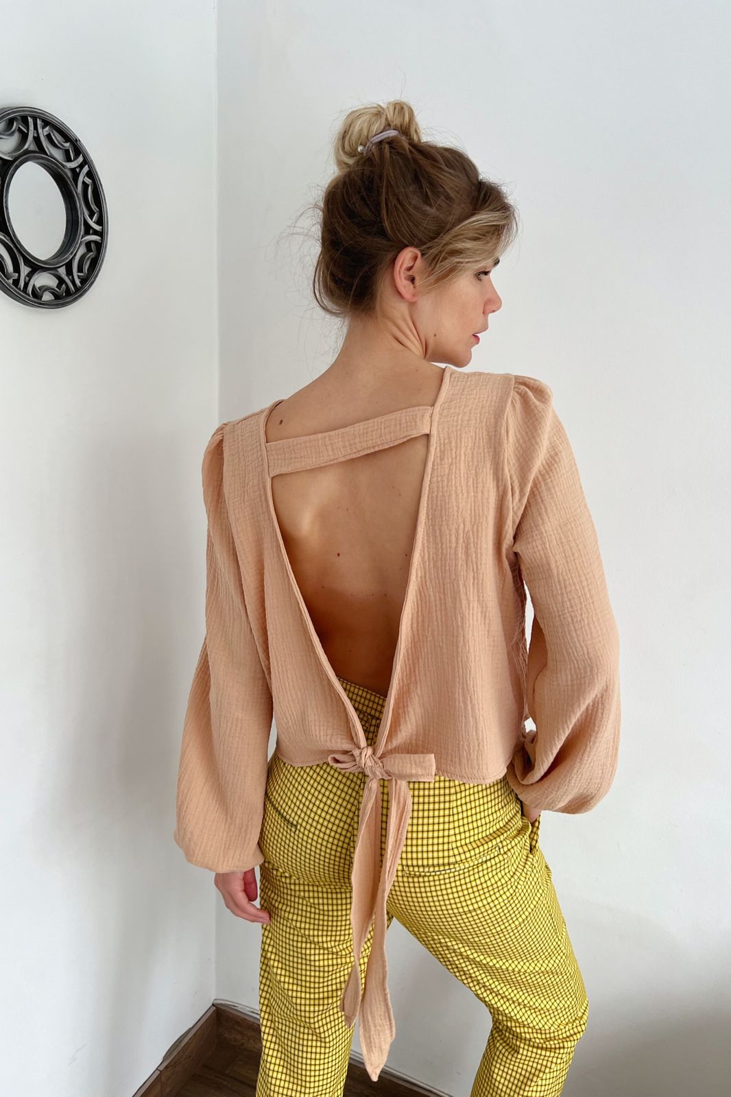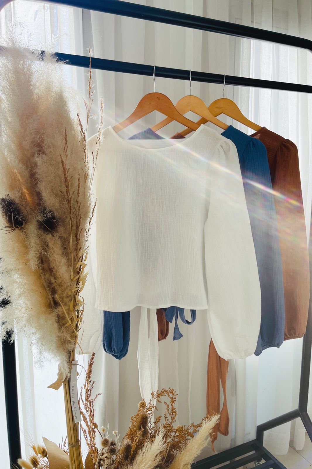 #Blusa #manga larga #lino algodon doble #escote en espalda #con lazo para atar #TALLE UNICO