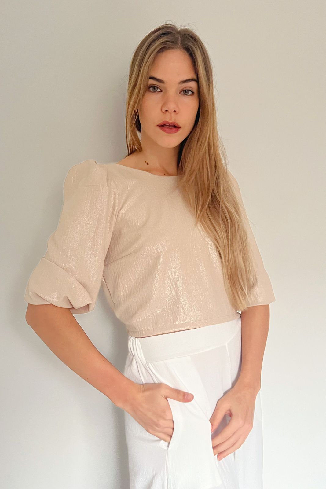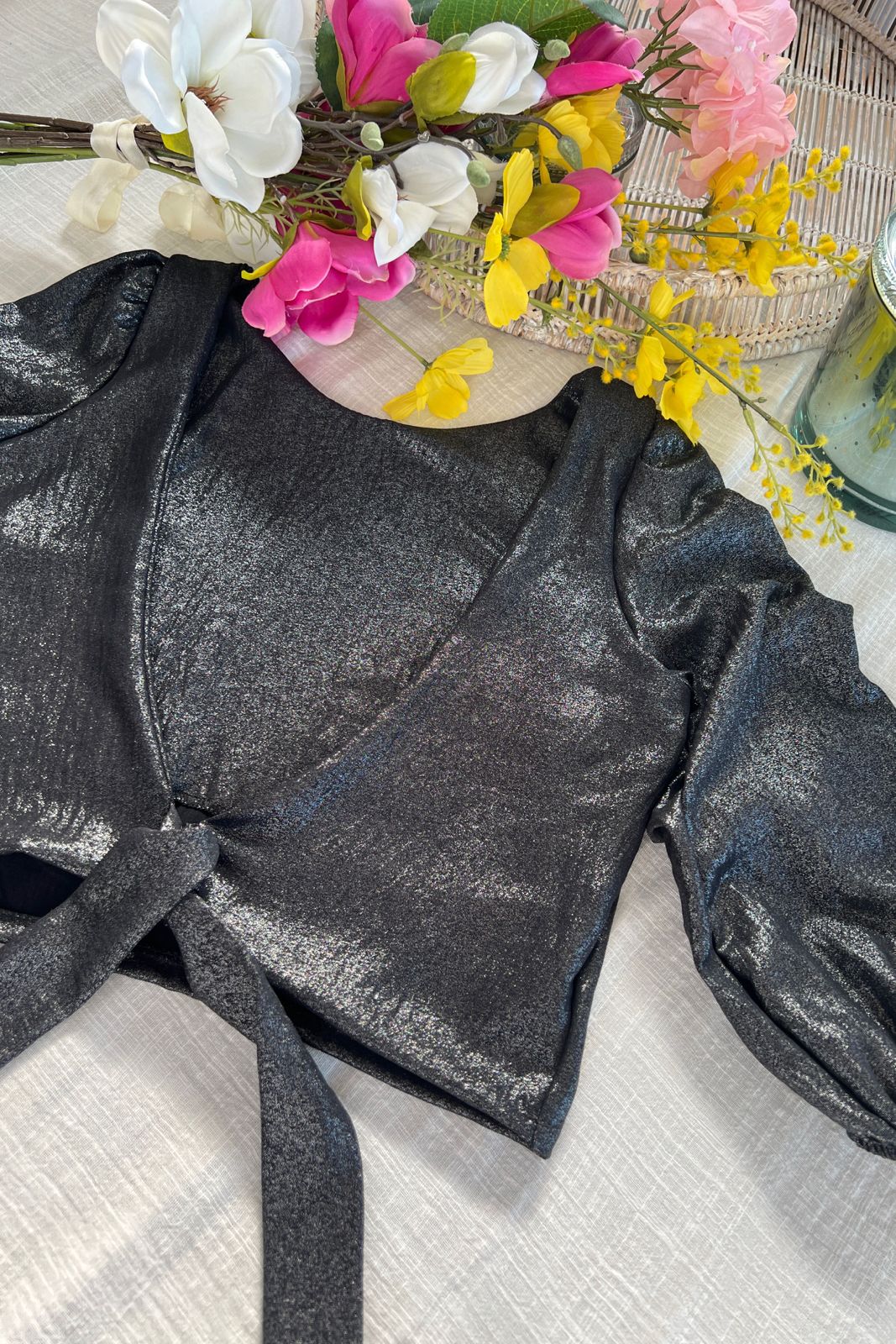 #Blusa #cuello redondo #manga 3/4 #crep foil #reversible #lazo para atar #TALLE UNICO # TALLE M/L(la modelo mide 170cm y es 38 de jean, te servira de referencia)