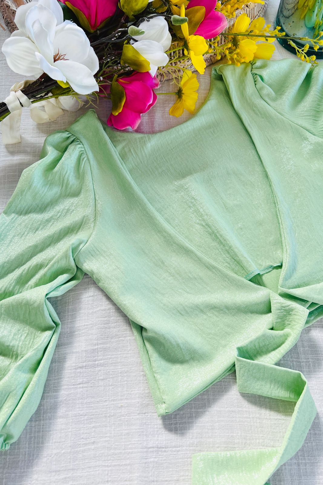 #Blusa #escote V delantero #escote V en espalda #lazo para atar #voladitos en manga #TALLE UNICO #TALLE M/L