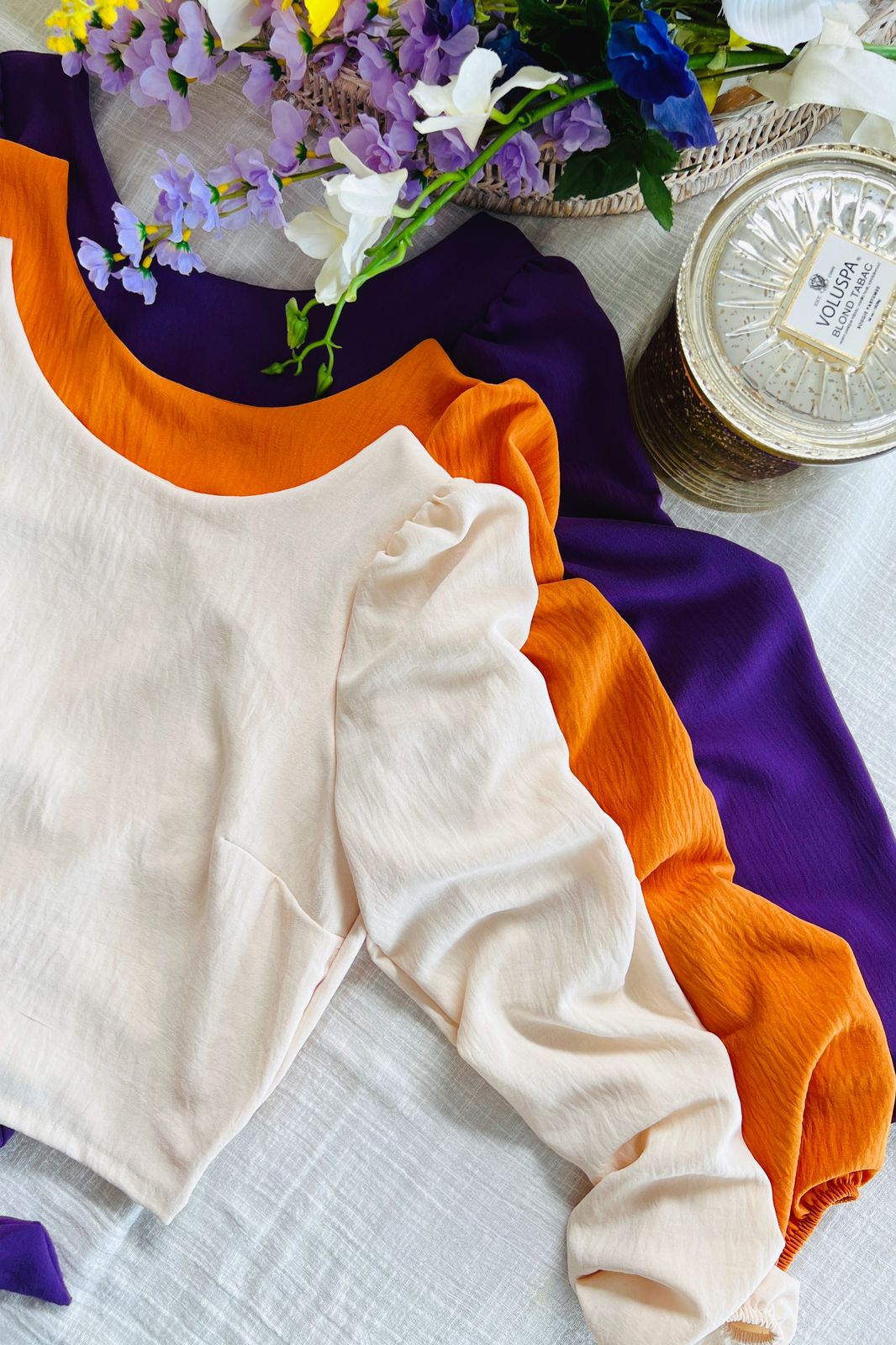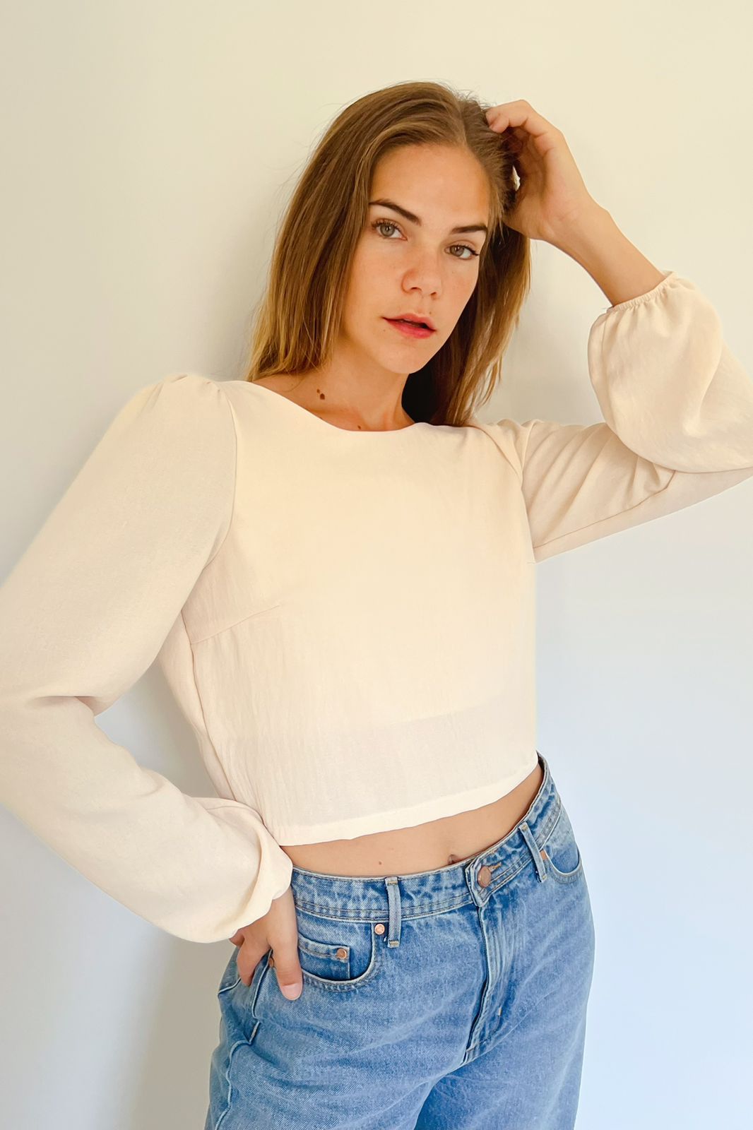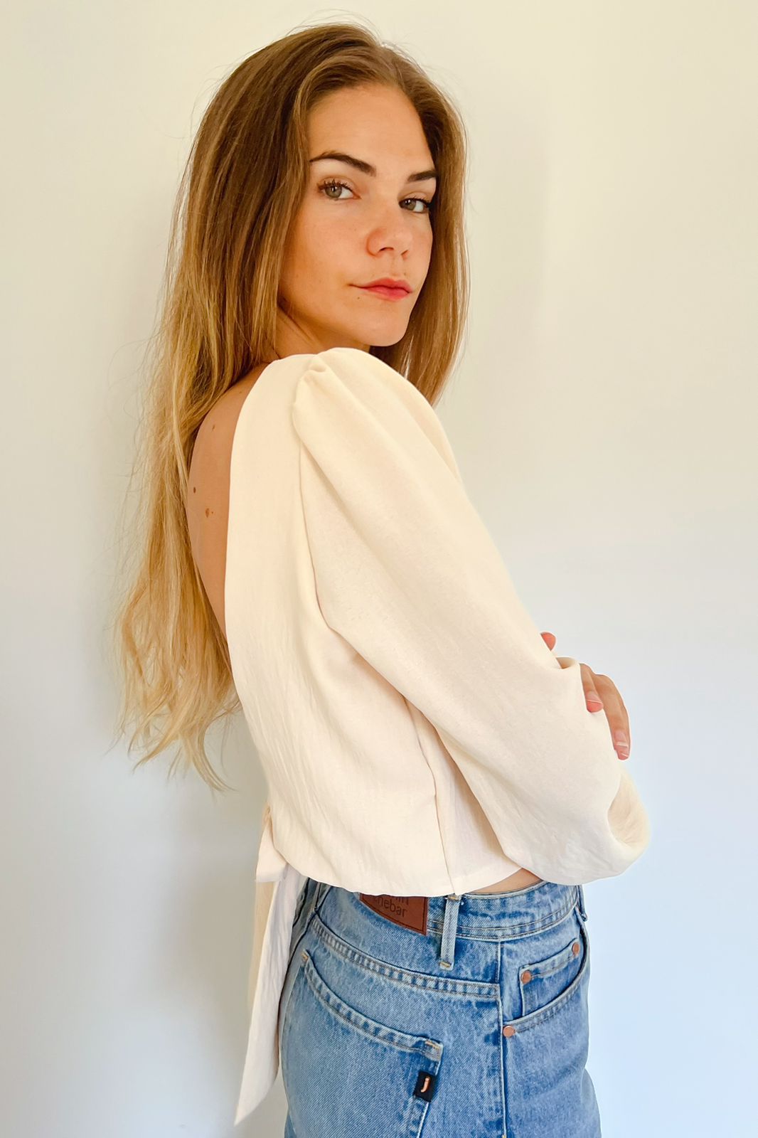 #Blusa #simil lino #manguita globo # manguita en encaje al tono #TALLE UNICO