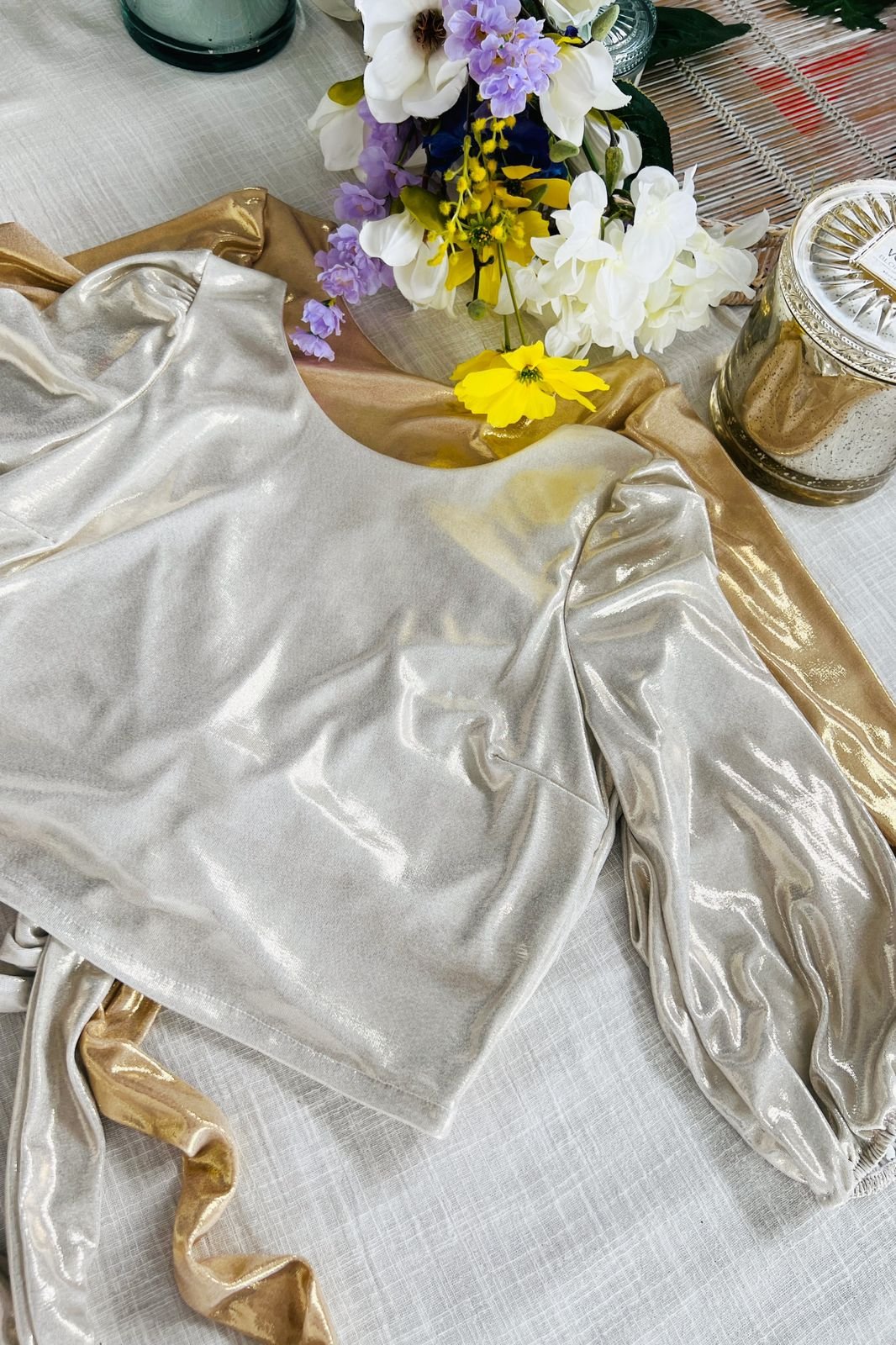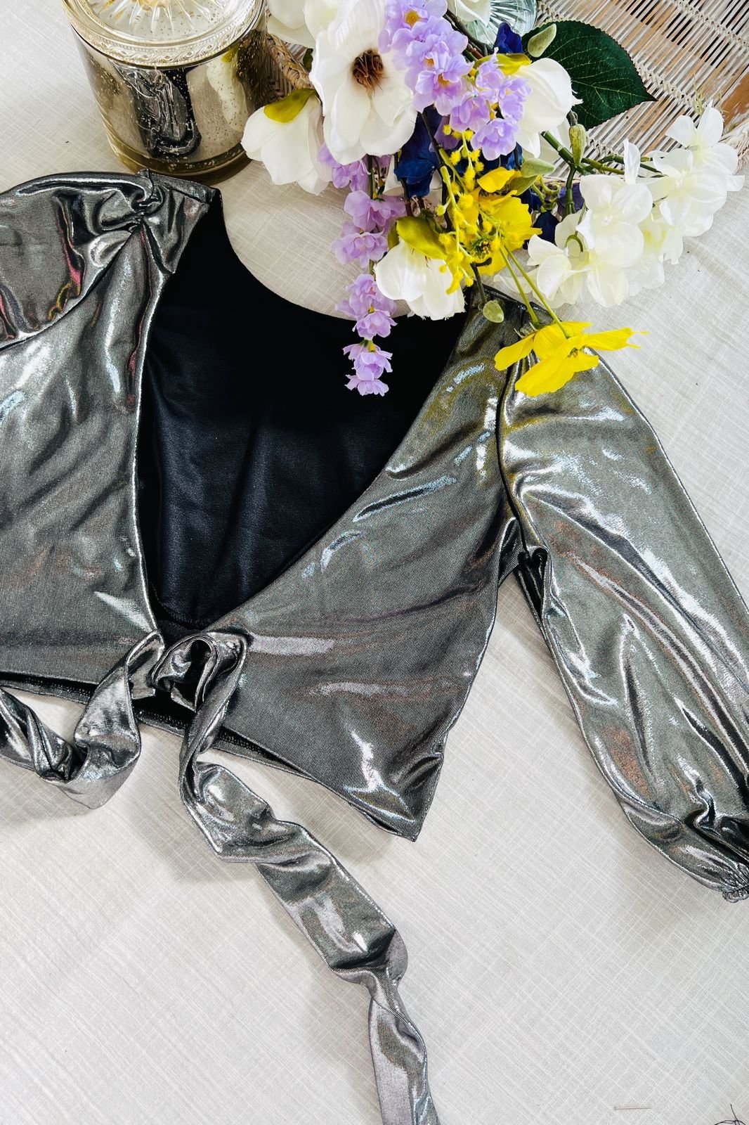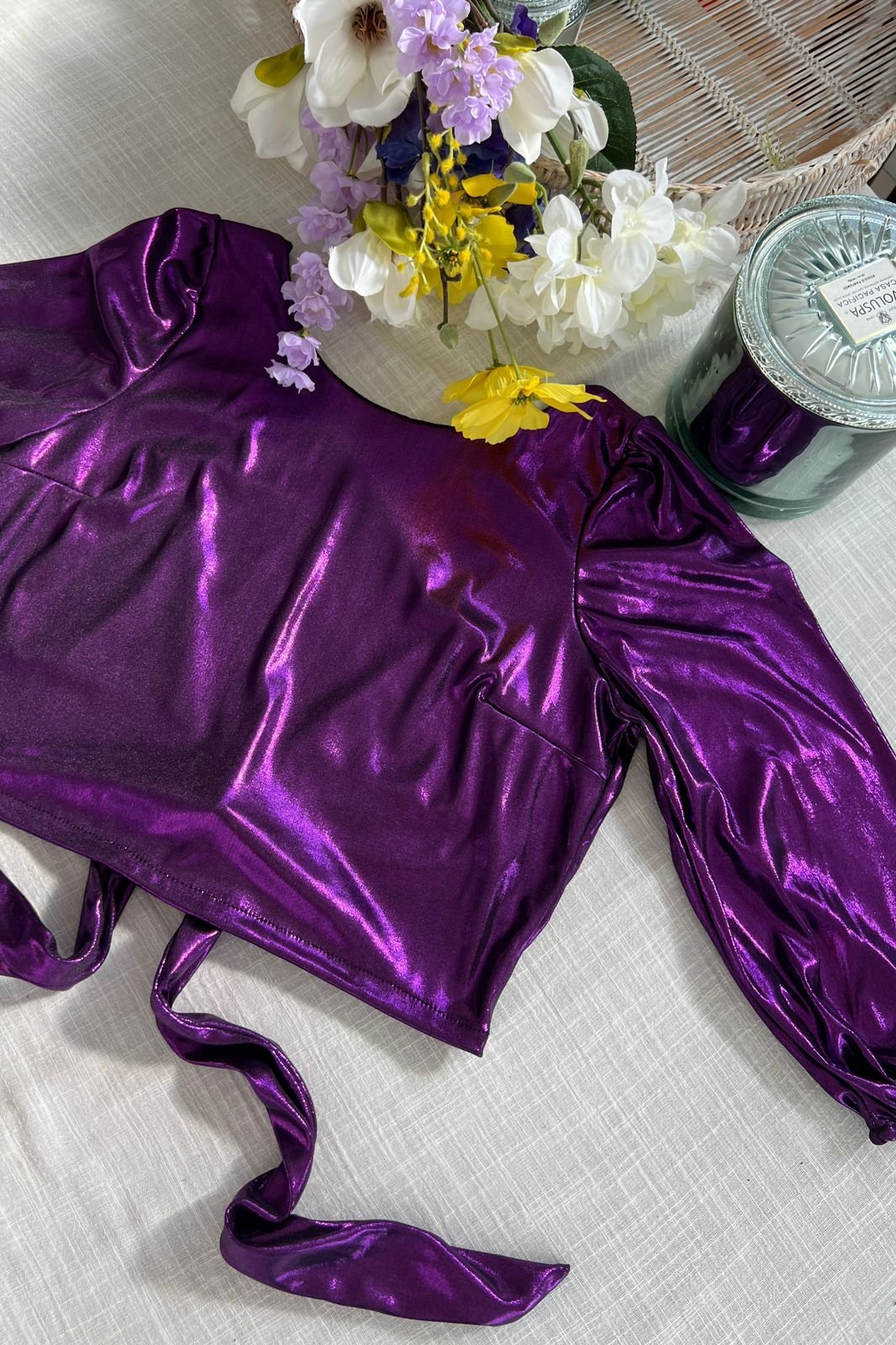 #Blusa #crep lino #manga 3/4 #manga globo #escote V delantero y espalda #tiras para atar #TALLE UNICO