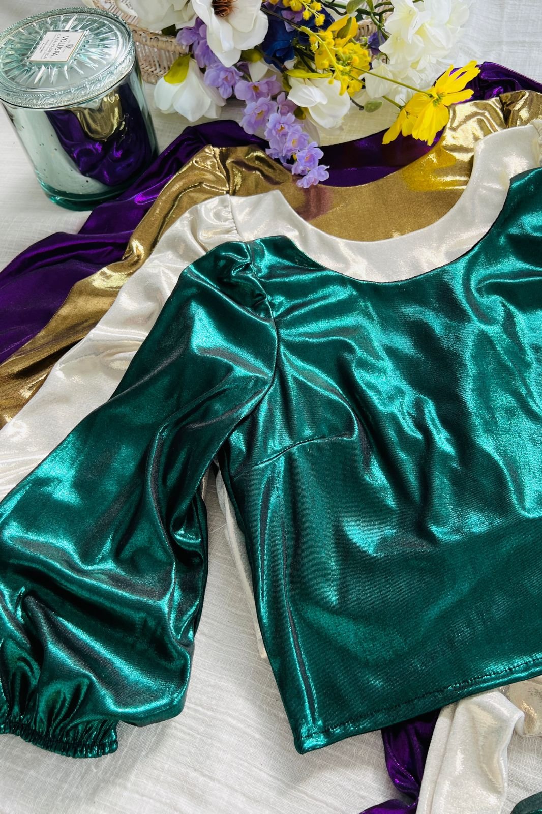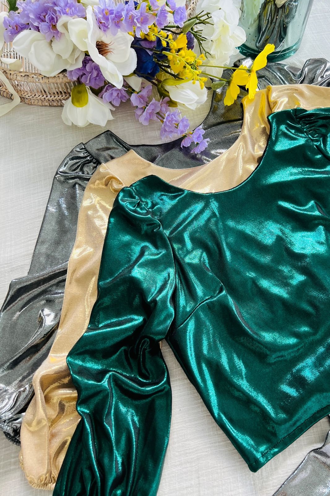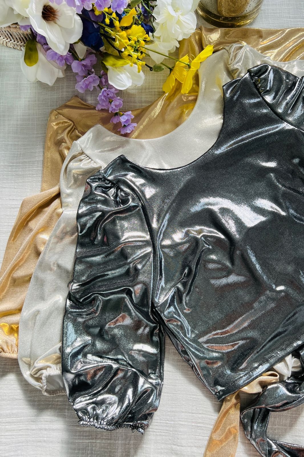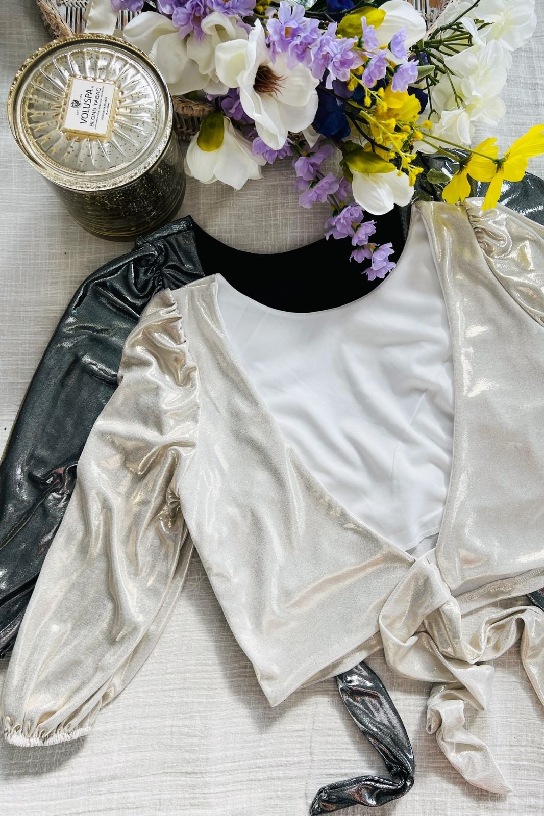 #Blusa #crep lino #manga 3/4 #manga globo #escote V delantero y espalda #tiras para atar #TALLE UNICO