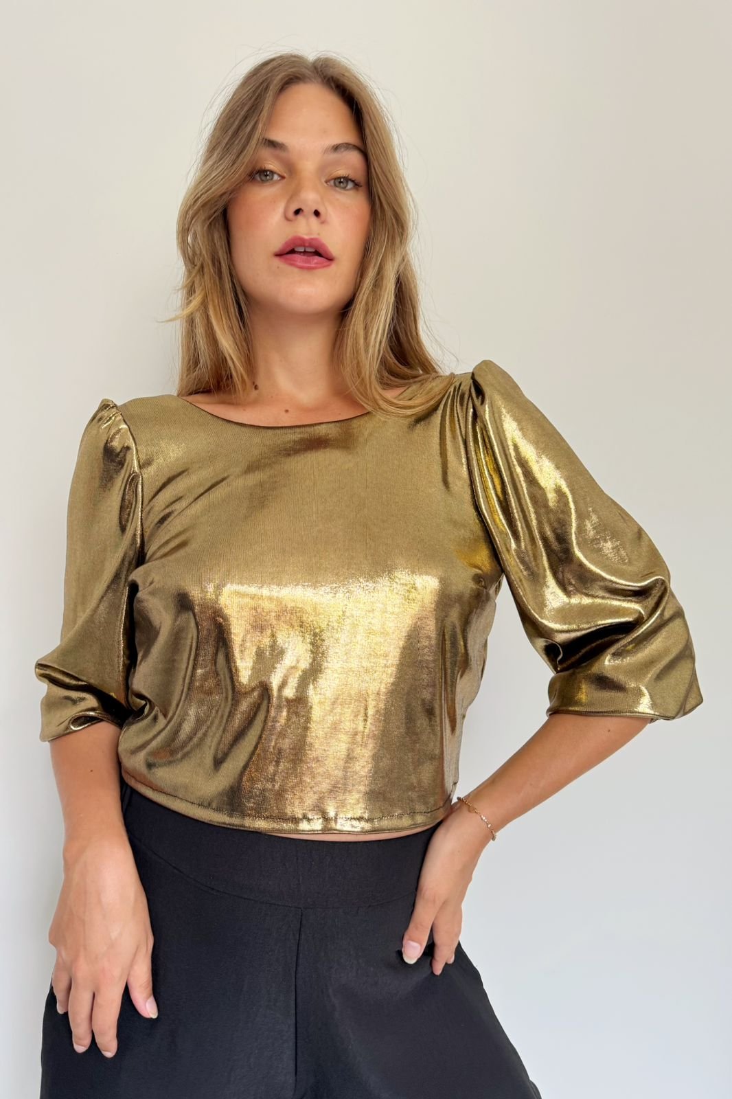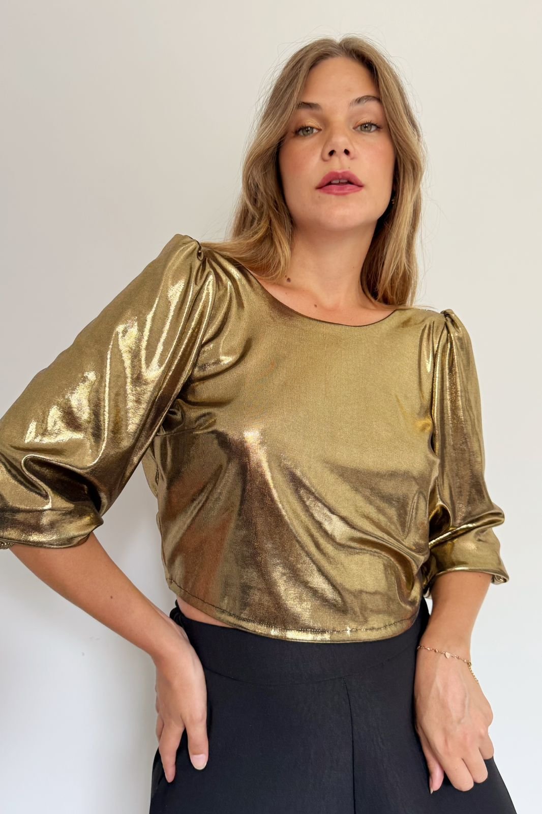 #Blusa #manga 3/4 #globo #con lazo largo para atar en espalda #escote redondo #TALLE UNICO #TALLE M