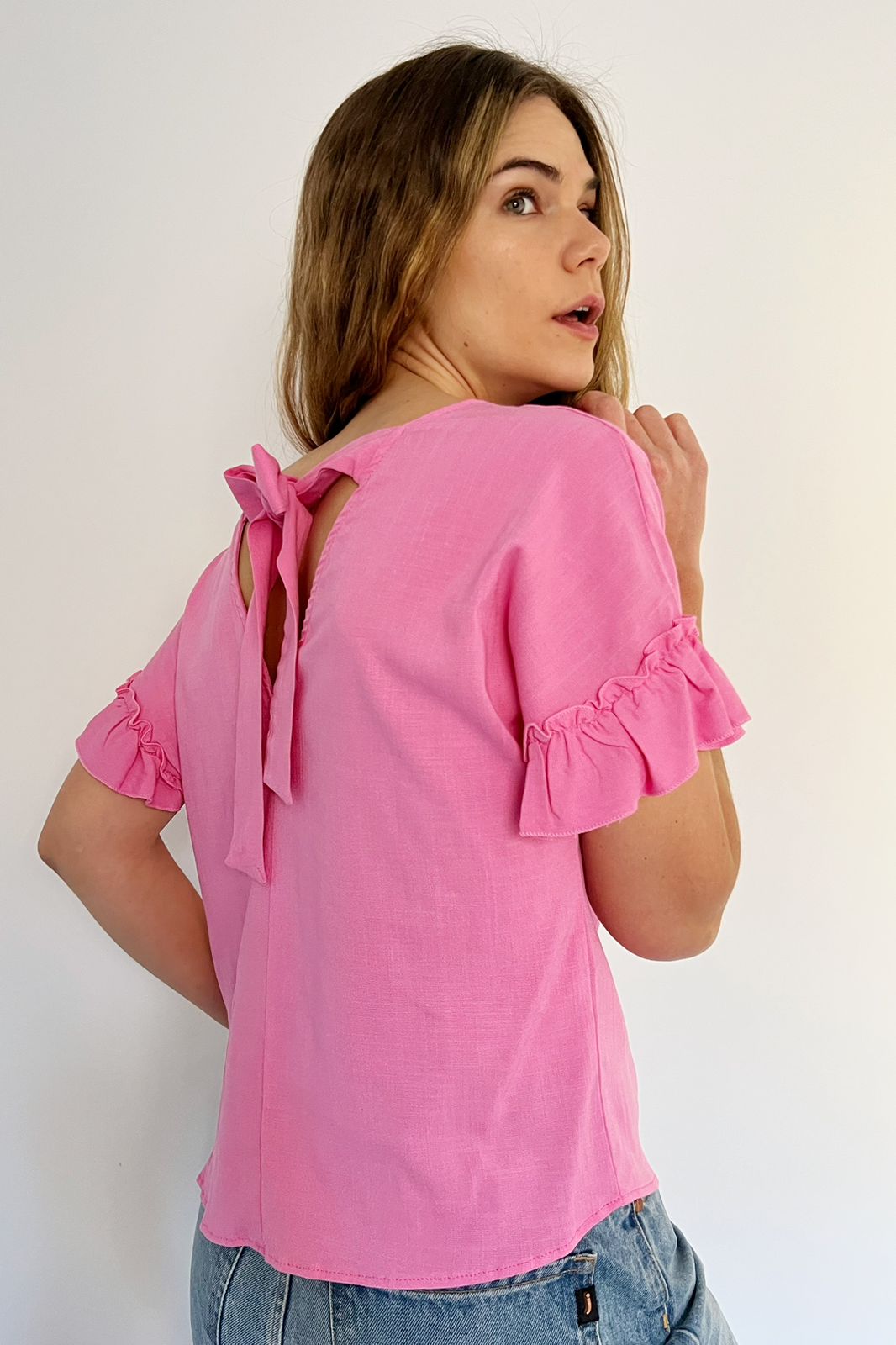 #Blusa #simil lino #manga corta #lazo para atar en espalda #fit amplio #TALLE UNICO #TALLE L (la modelo mide 170cm y es 38 de jean te servira de referencia)