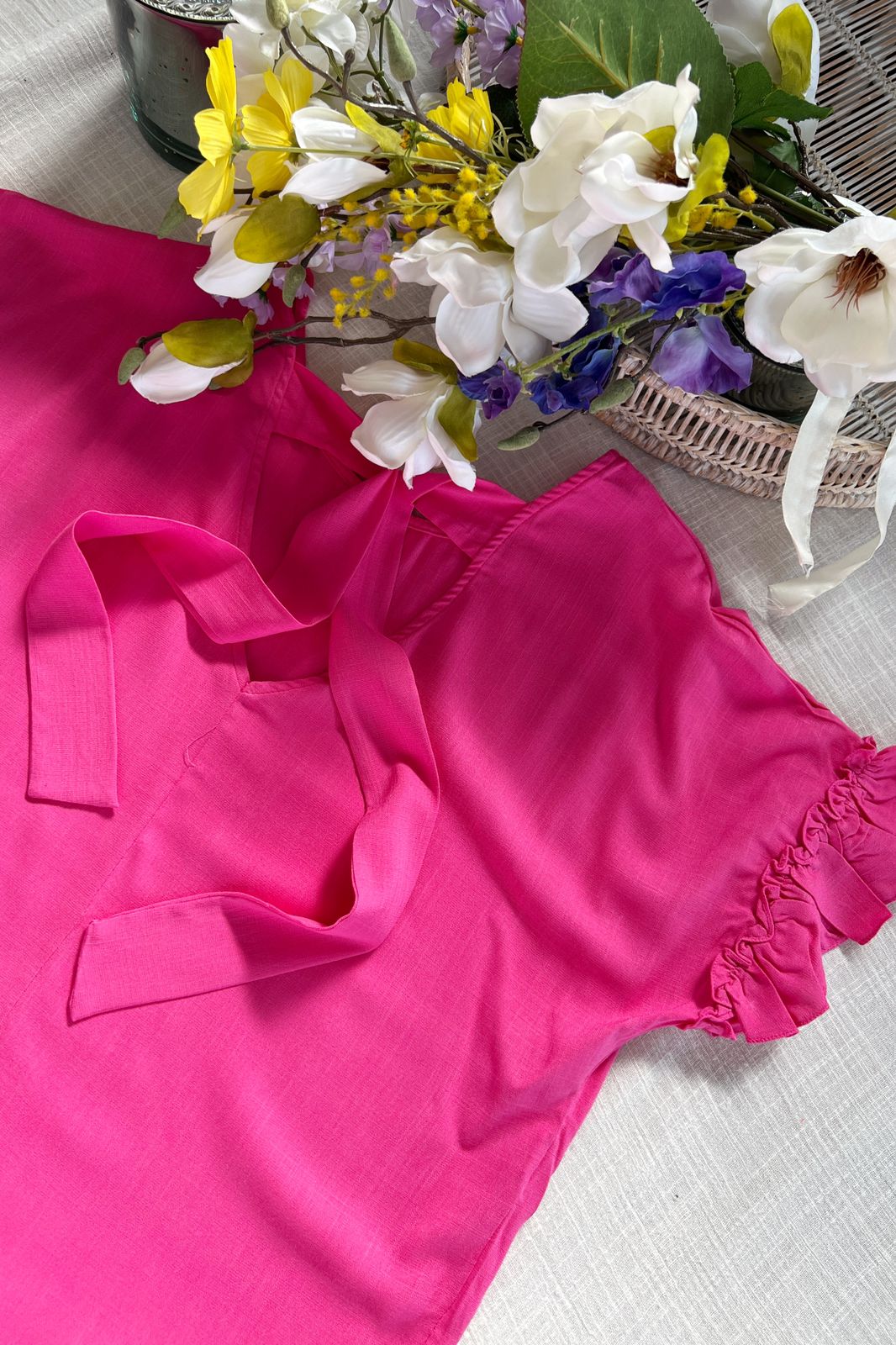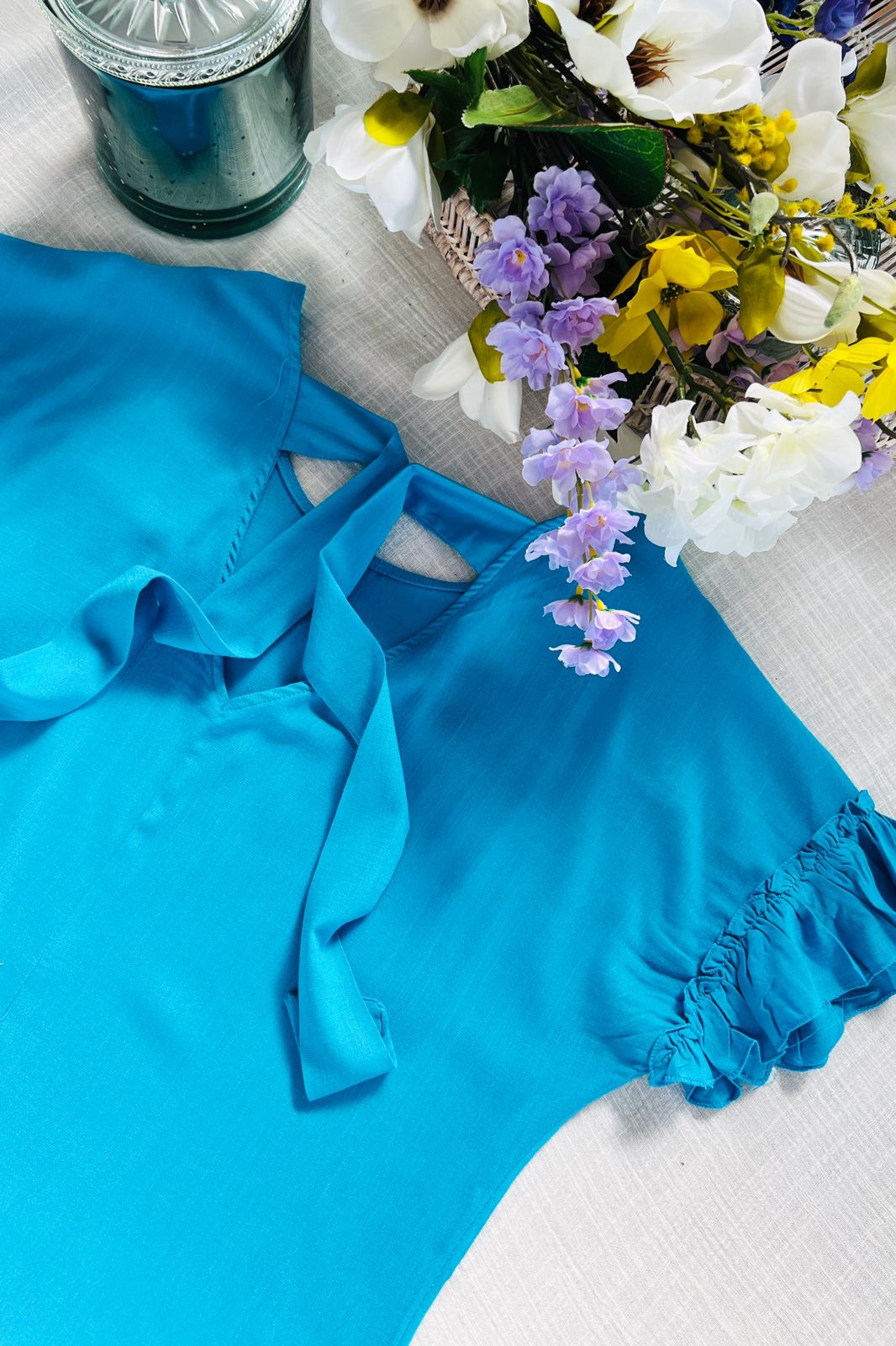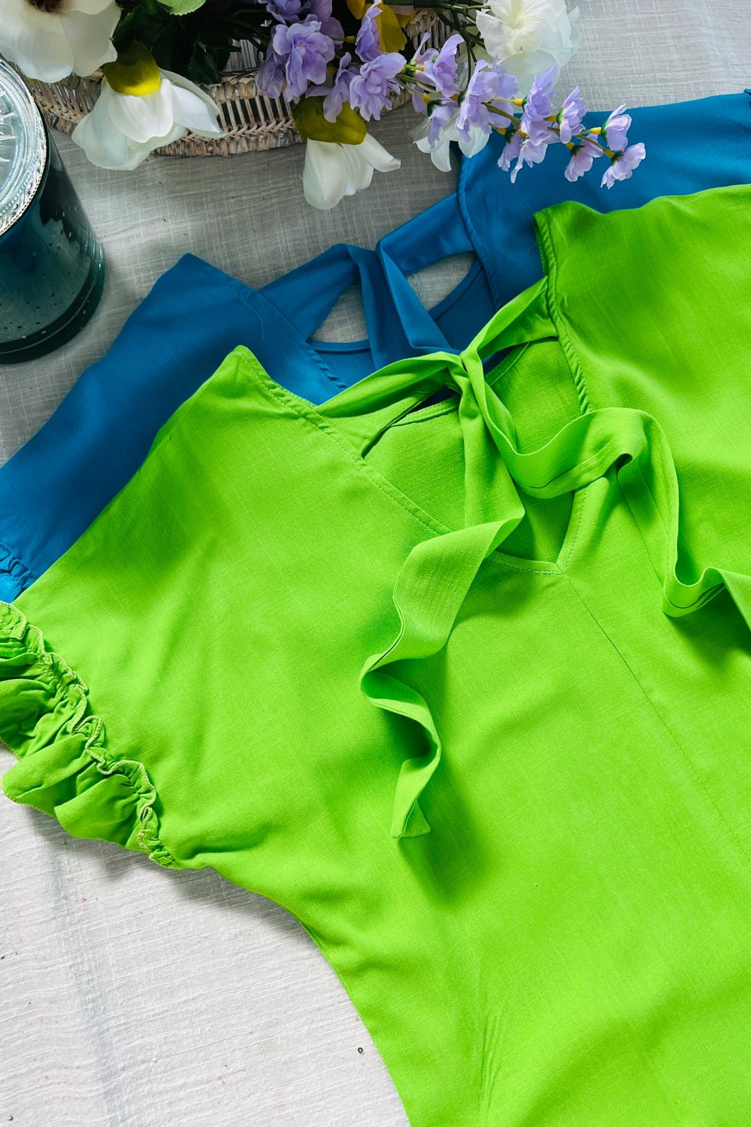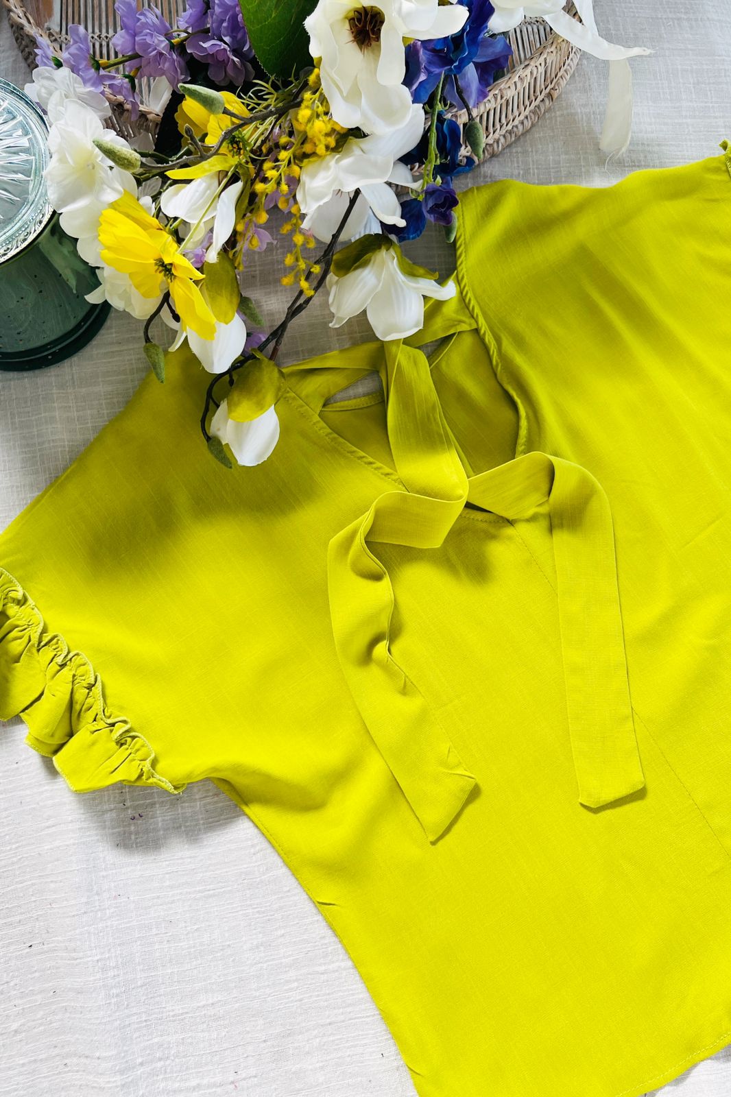 #Blusa #escote V delantero #escote V en espalda #lazo para atar #voladitos en manga #TALLE UNICO #TALLE M/L