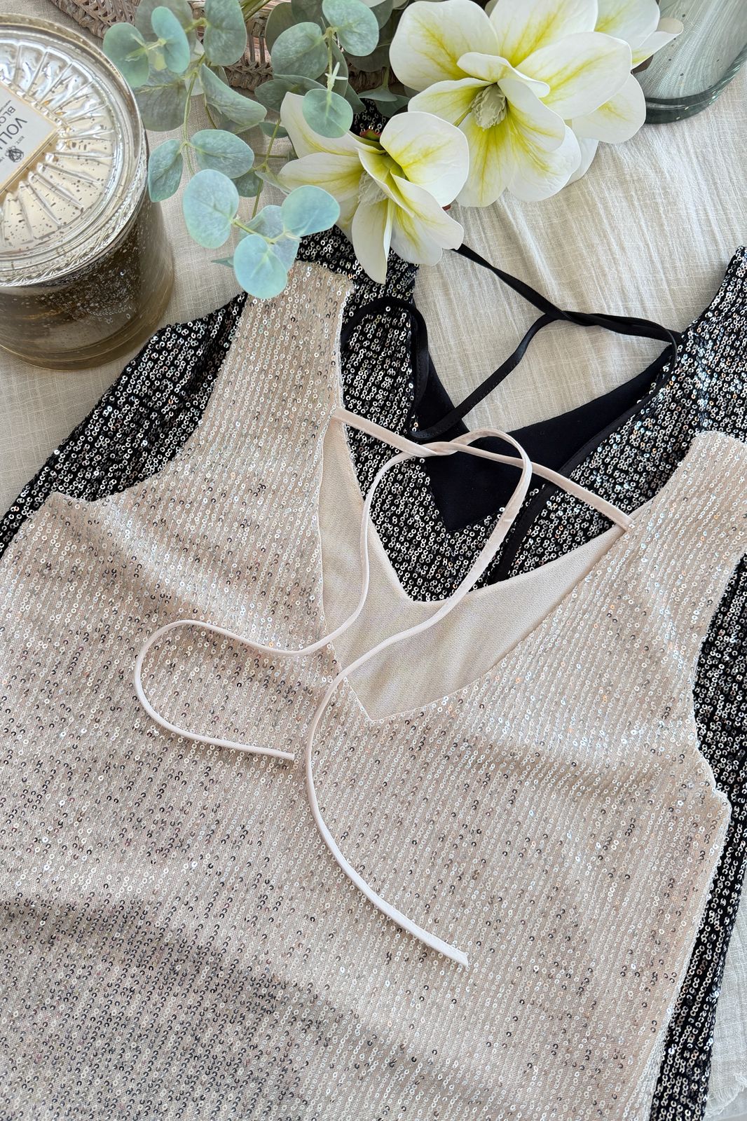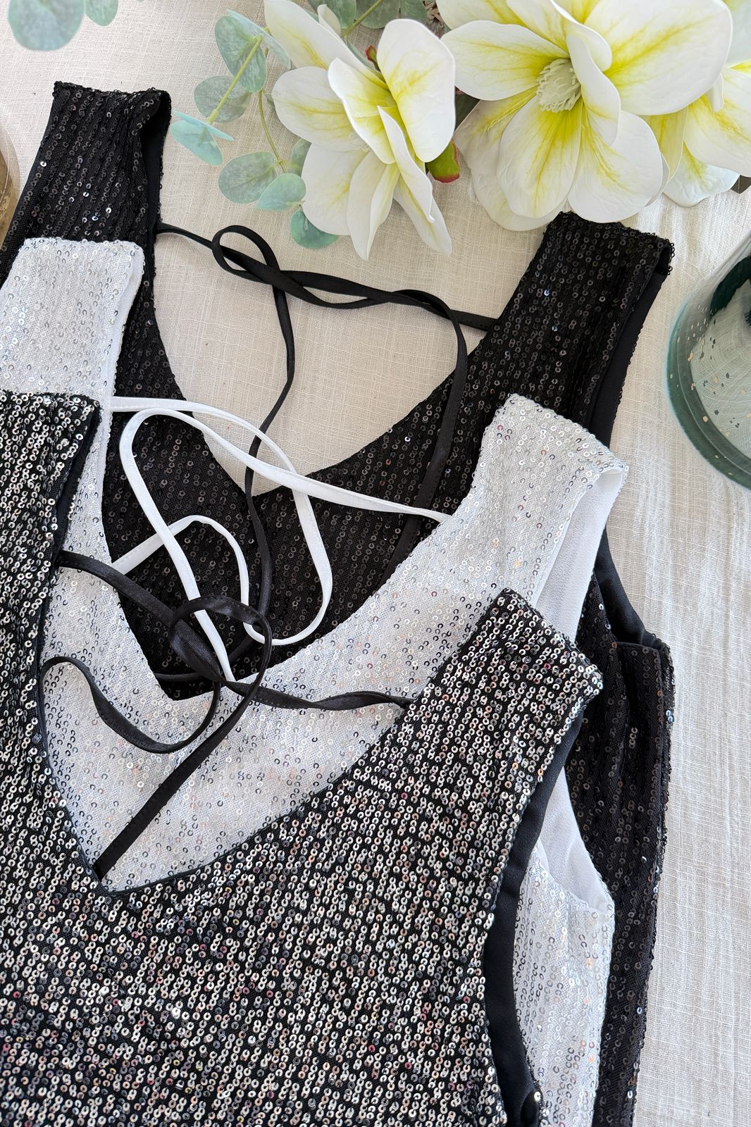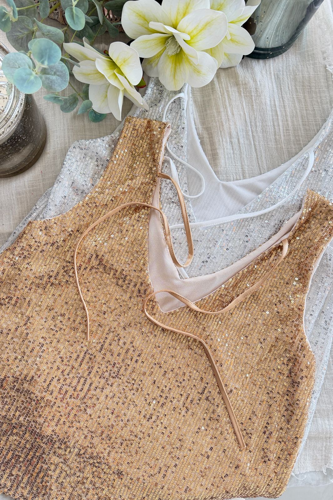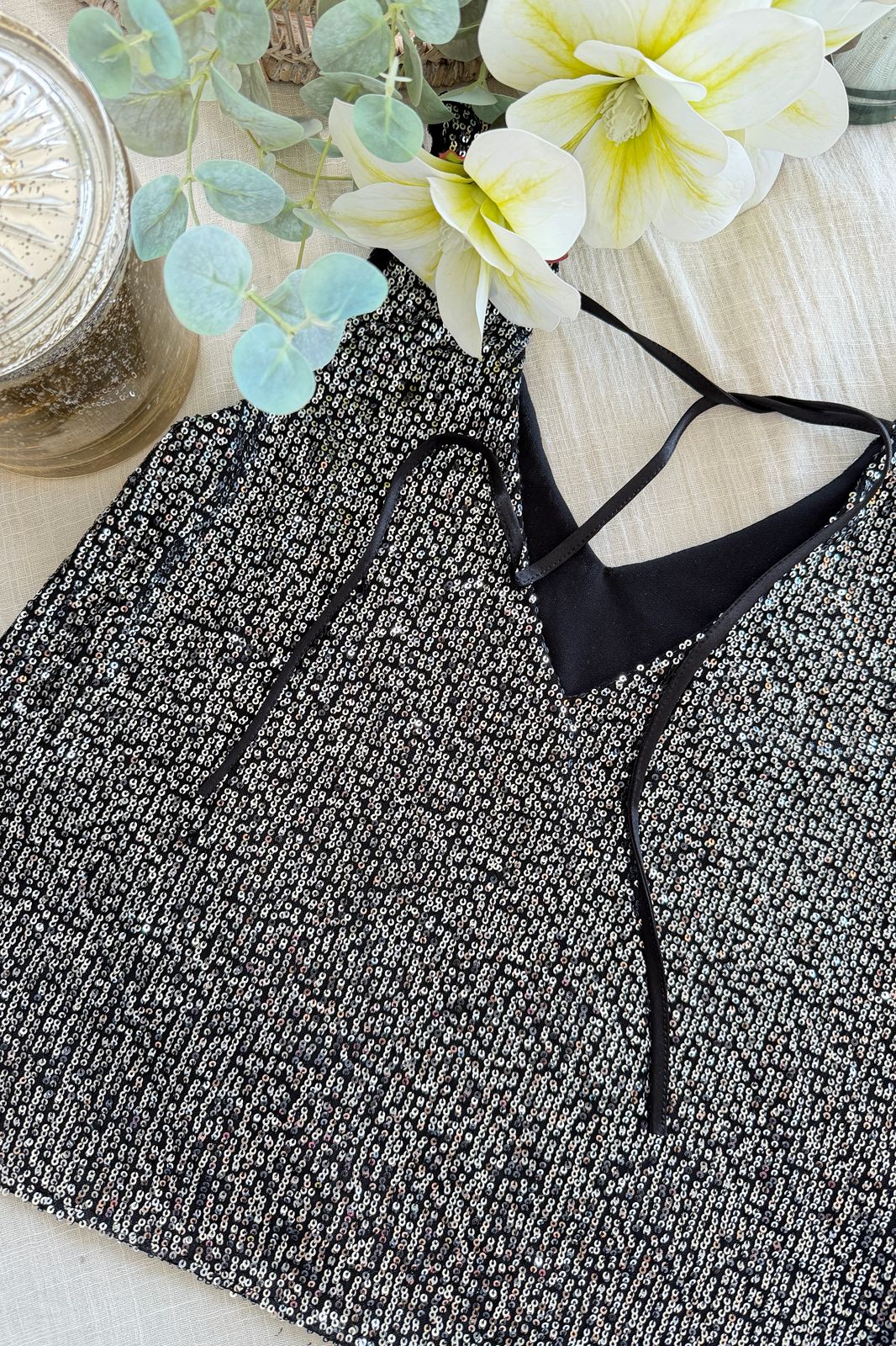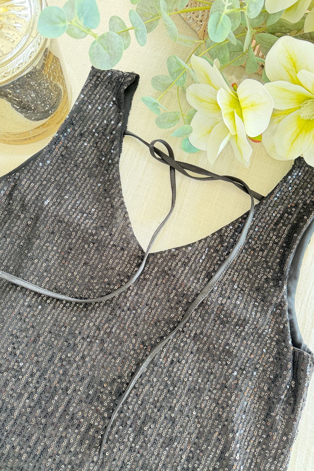 #Blusa #pailettes #sin manga #doble escote V #tiras al tono para atar en la espalda #TALLE UNICO #TALLE L