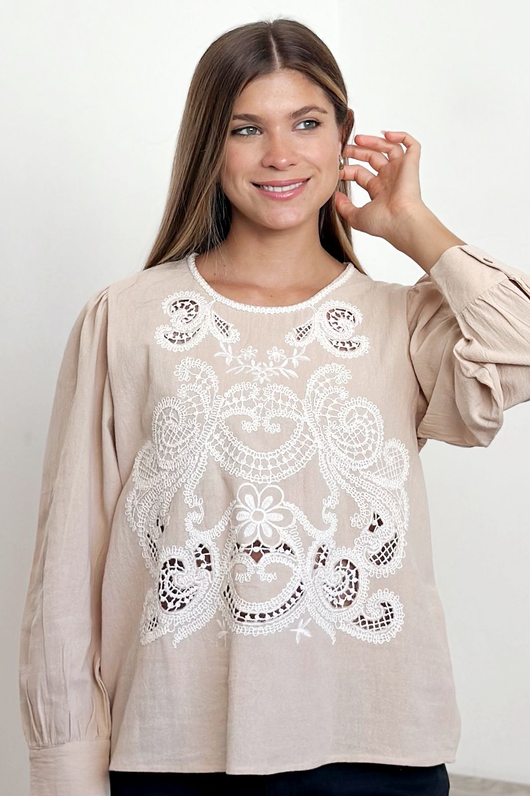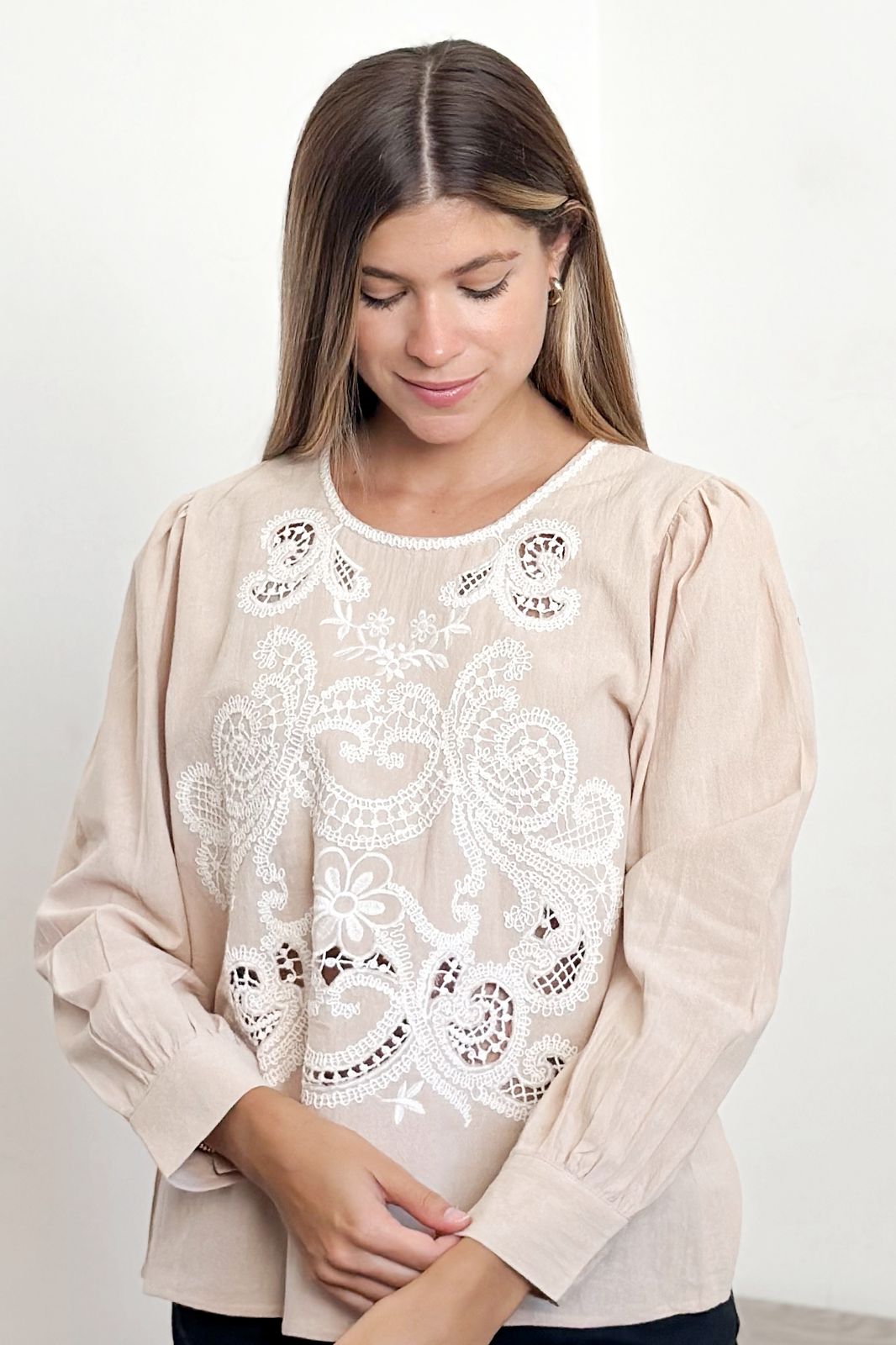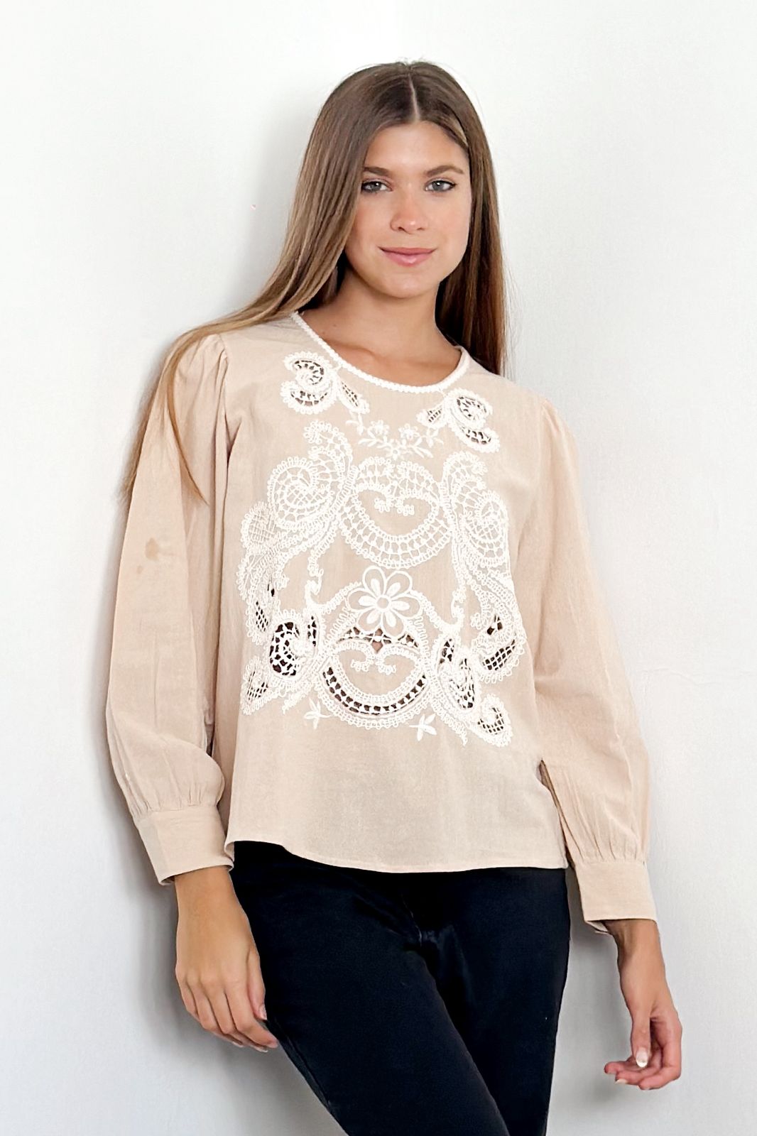 #Blusa #manga larga #bordado en delantero #manga princesa #TALLE UNICO