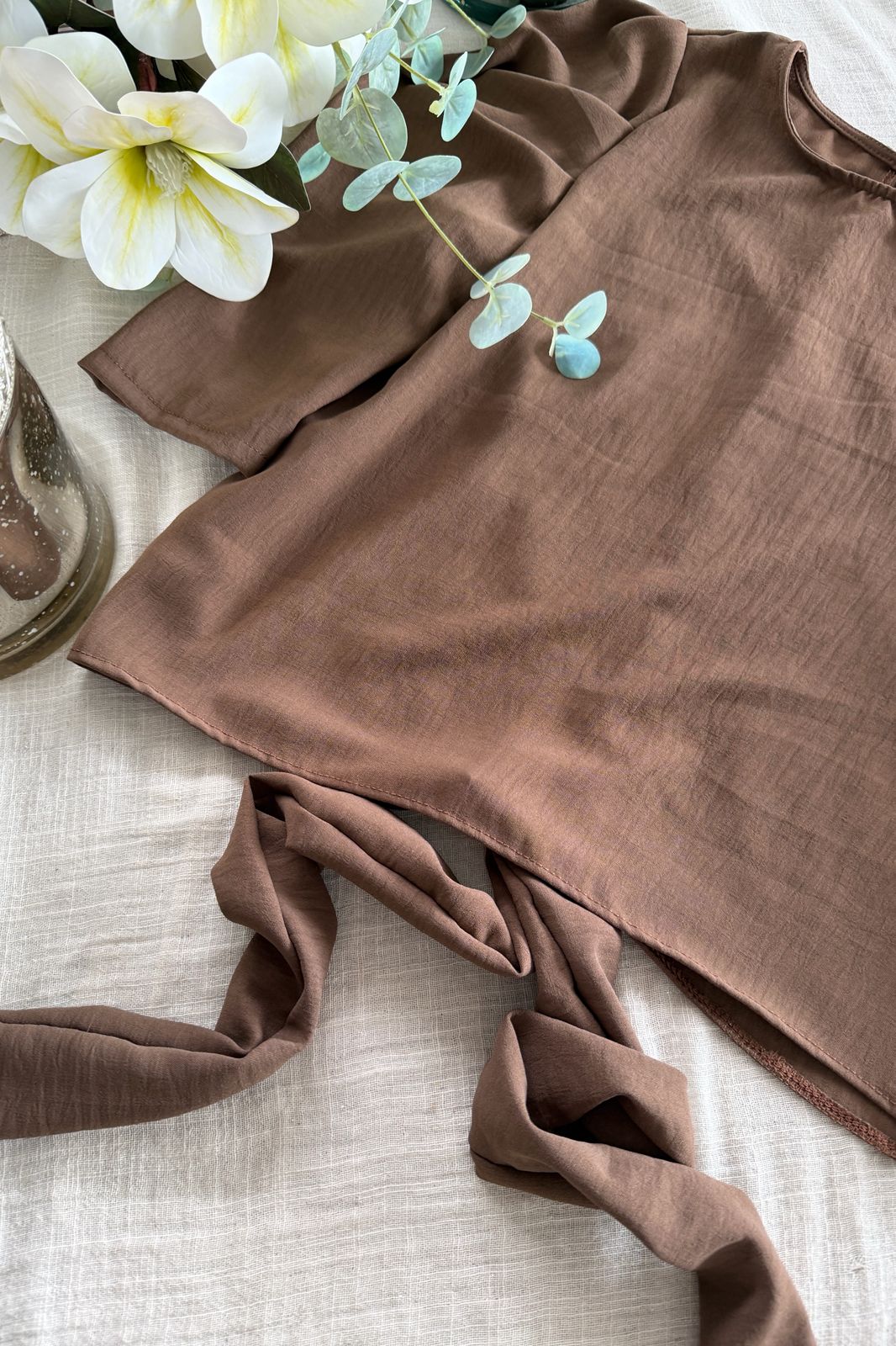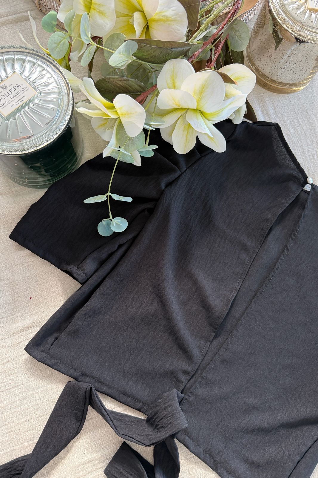 #Top #crep lino #escote V #voladitos #tirita para atar en espalda #TALLE UNICO